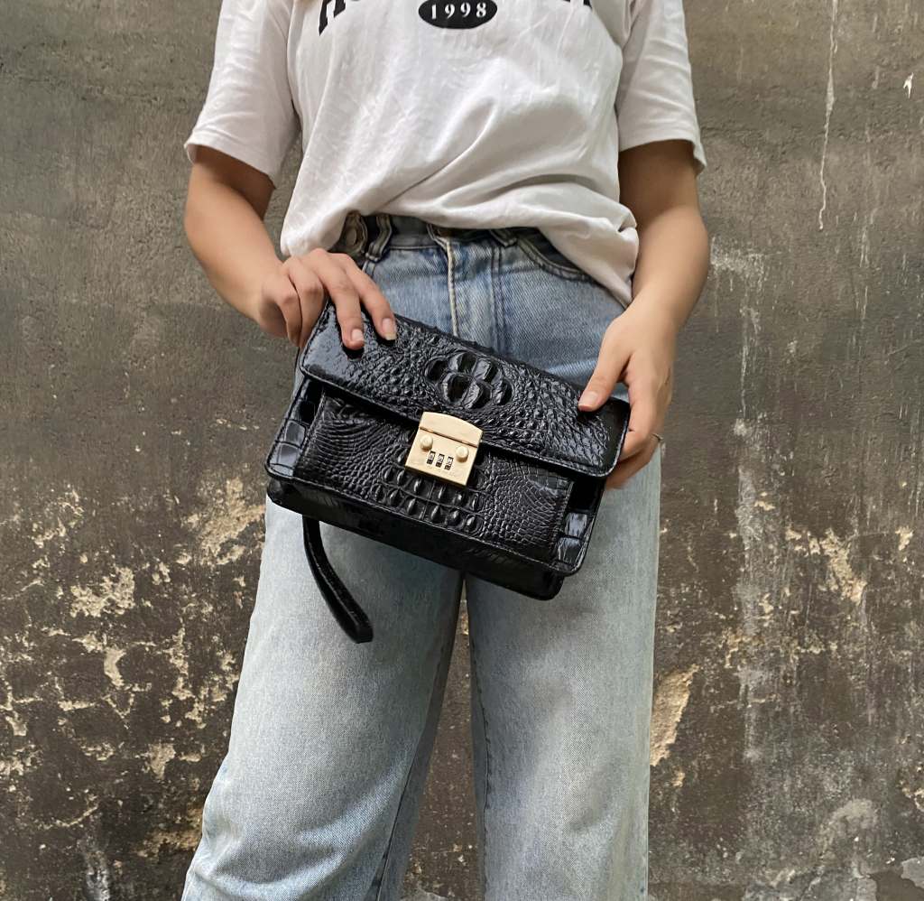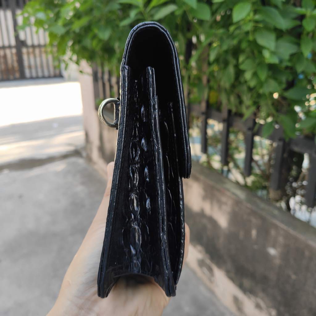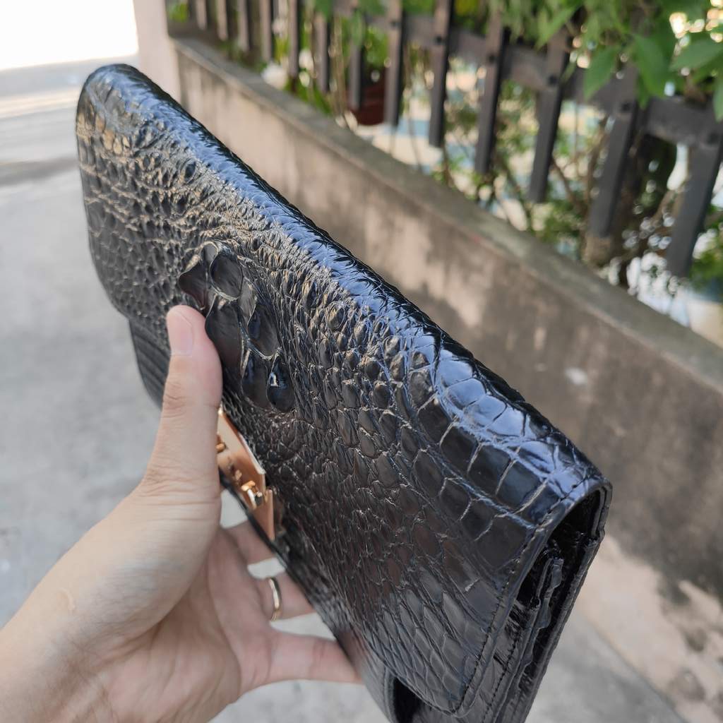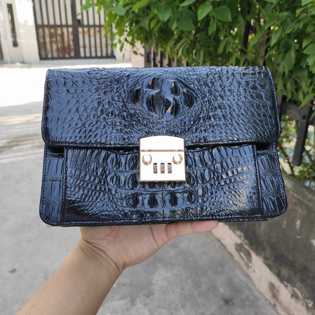 Cặp được làm liền mạch nguyên tấm da cá sấu lớn rất đẹp và chắc chắn. Trang bị khóa số bảo mật tuyệt đối!
