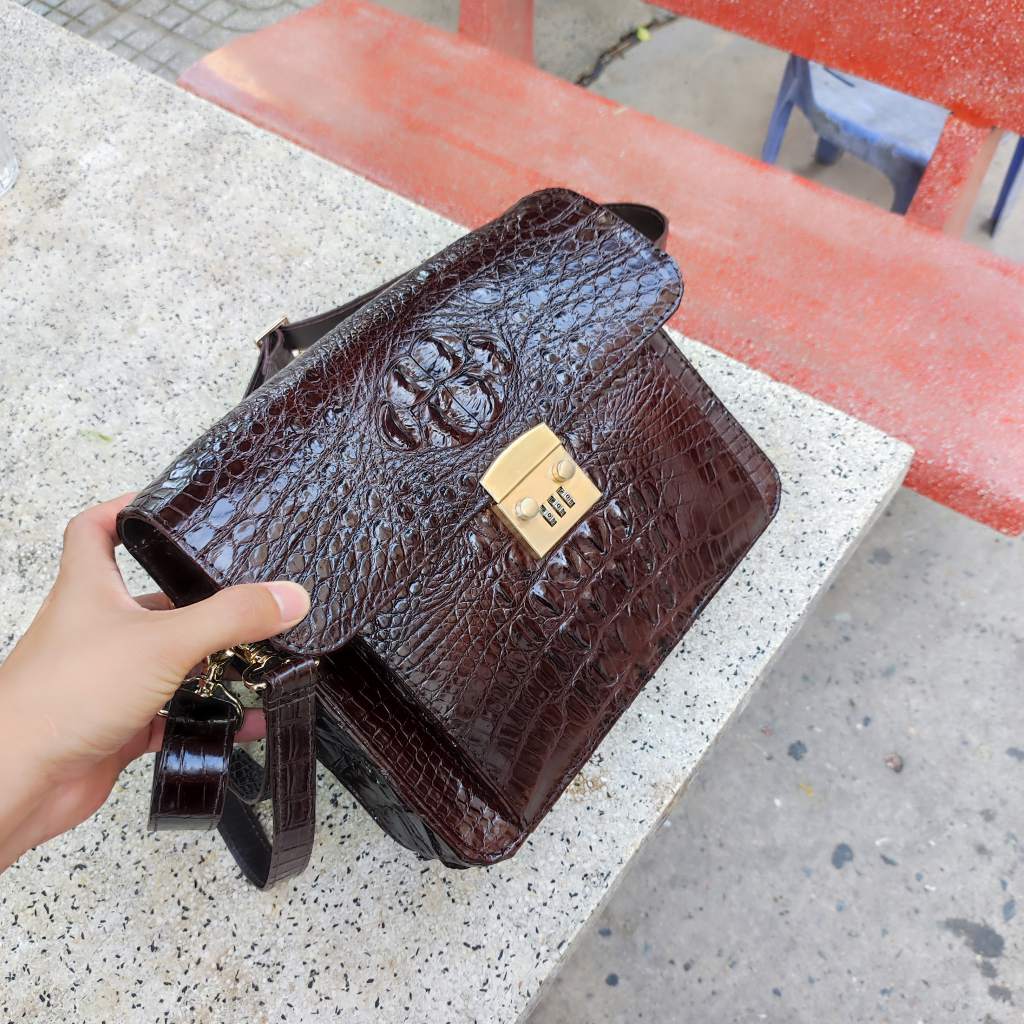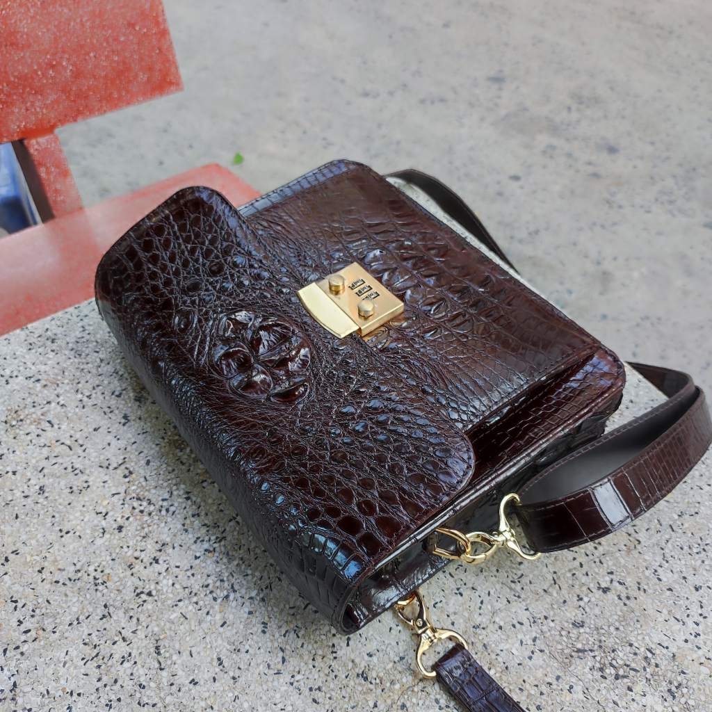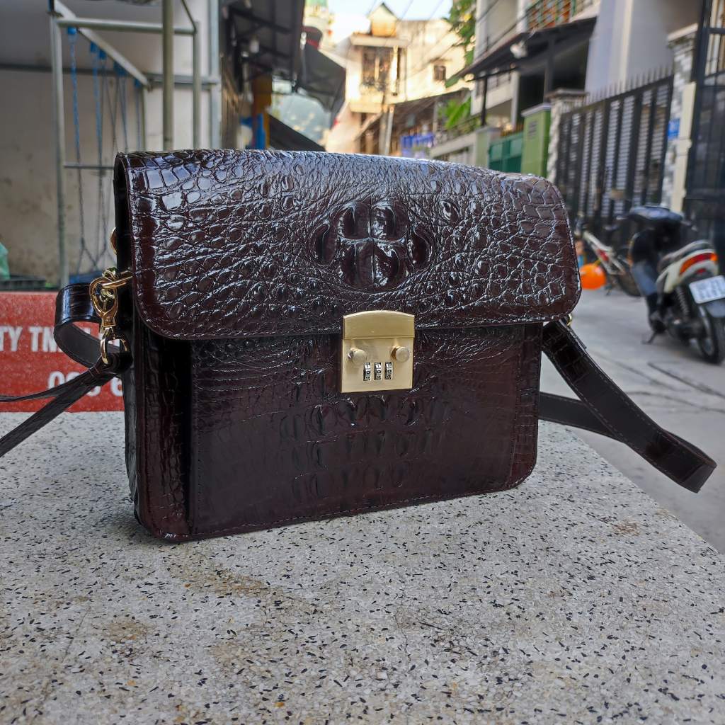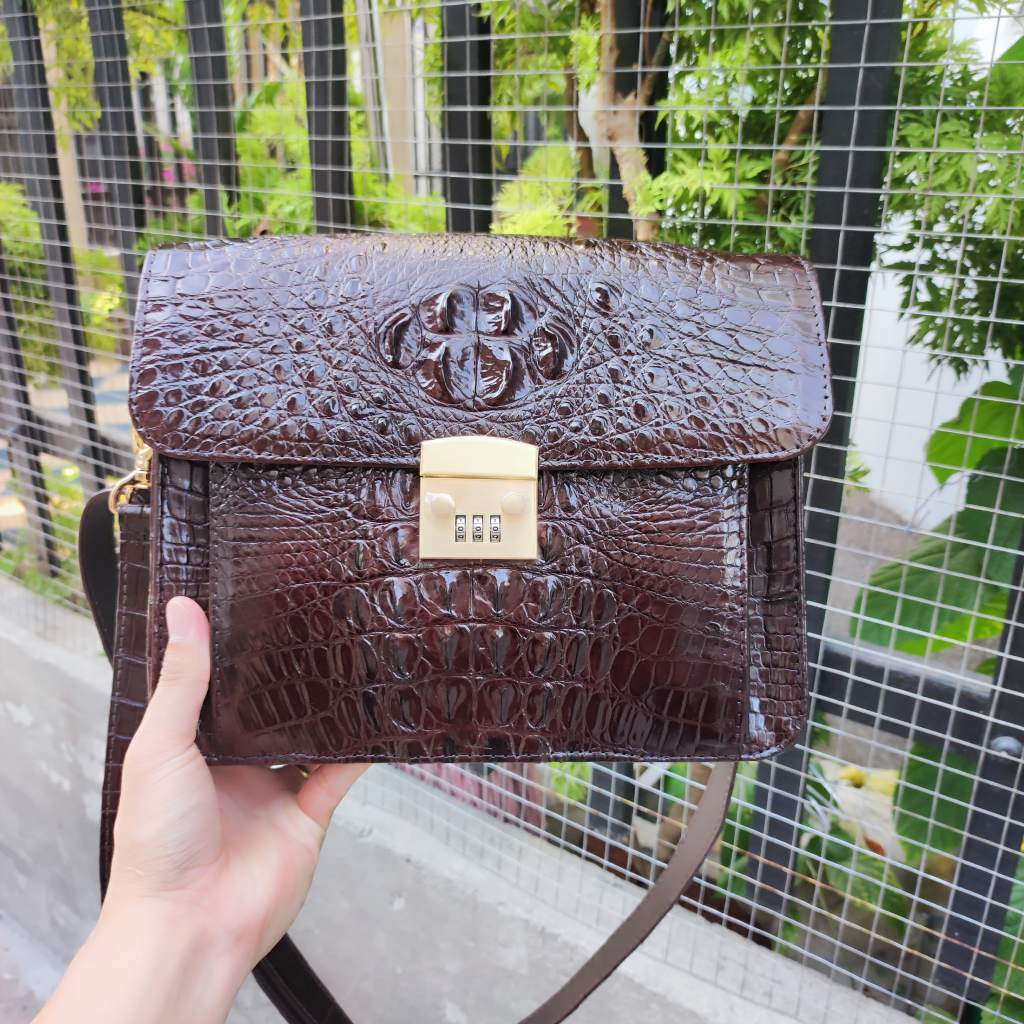 Cặp được làm liền mạch nguyên tấm da lưng cá sấu có gù gai rất đẹp. Trang bị khóa 3 số bảo mật tuyệt đối!
