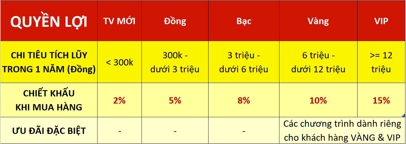 Thành viên VIP: Chi tiêu tích lũy từ 12 triệu trở lên
