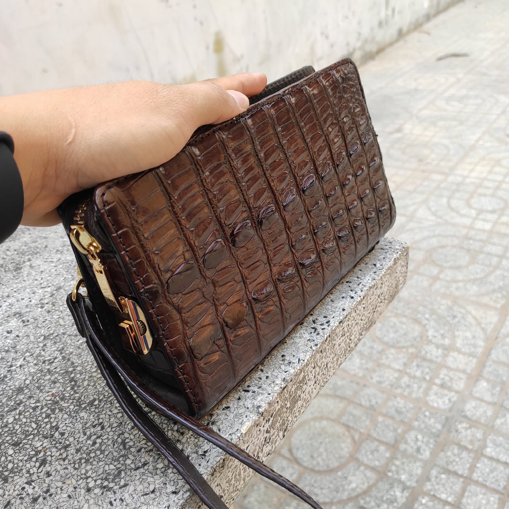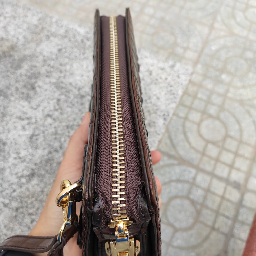 VIDEO CLUTCH CẦM TAY DA CÁ SẤU KHÓA SỐ BẢO MẬT