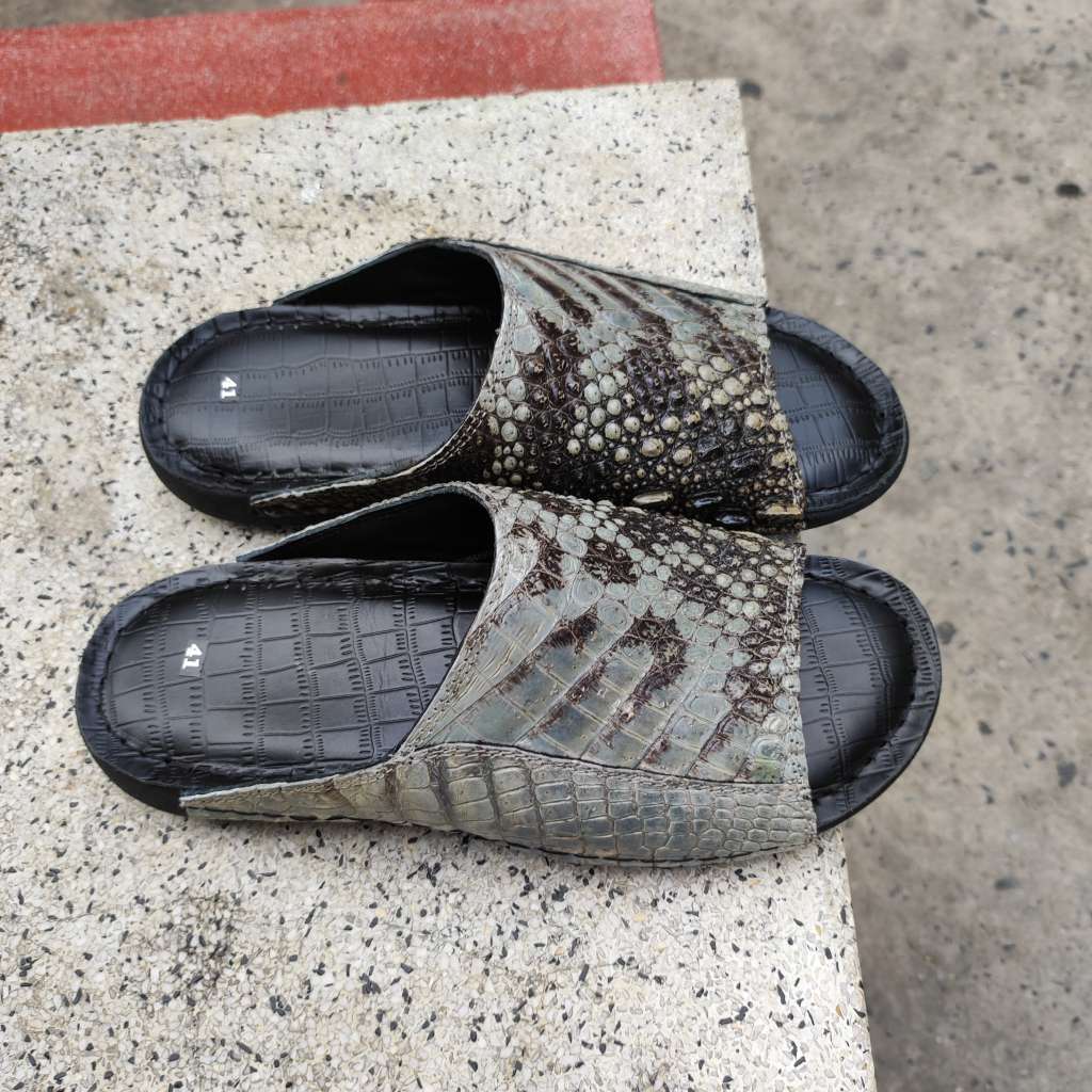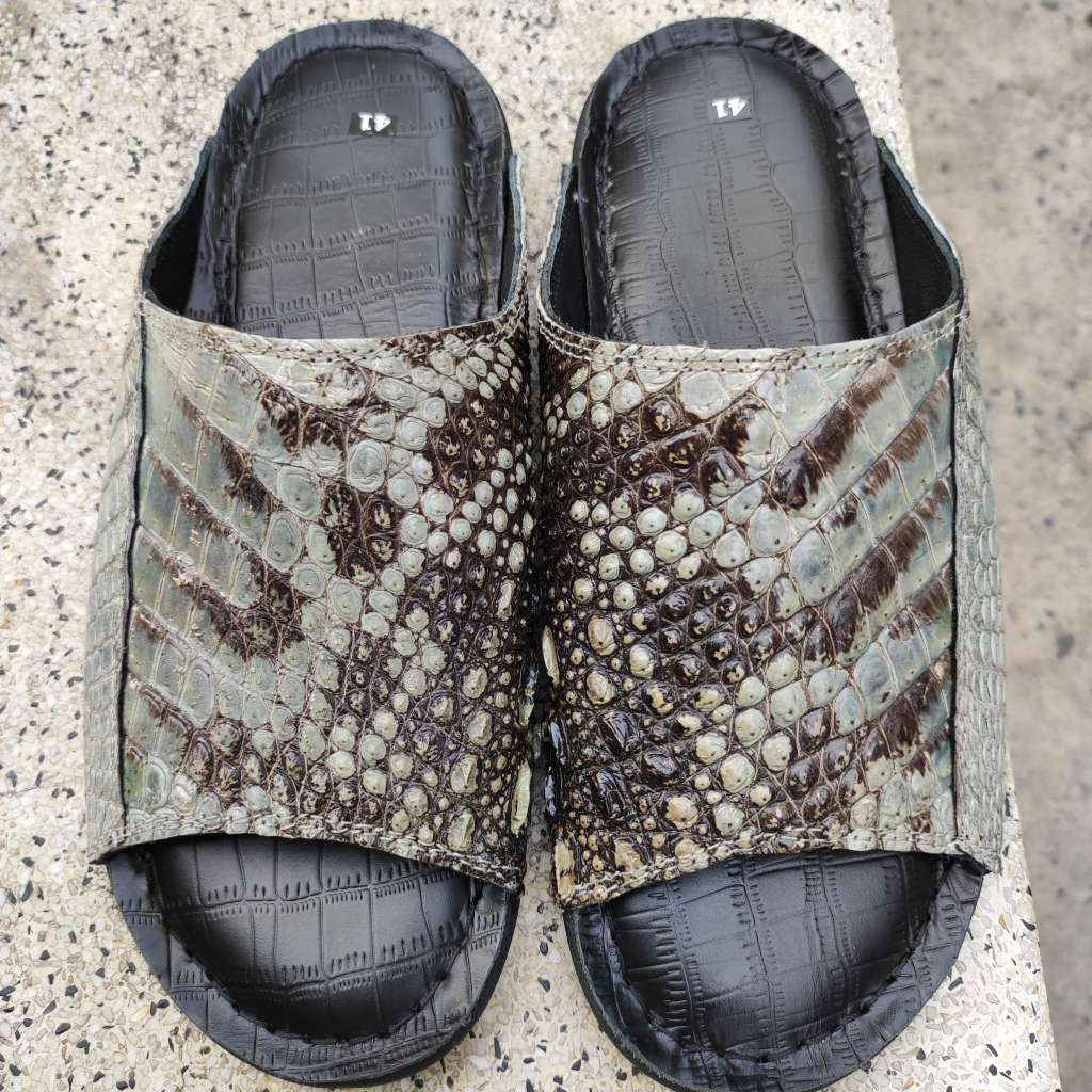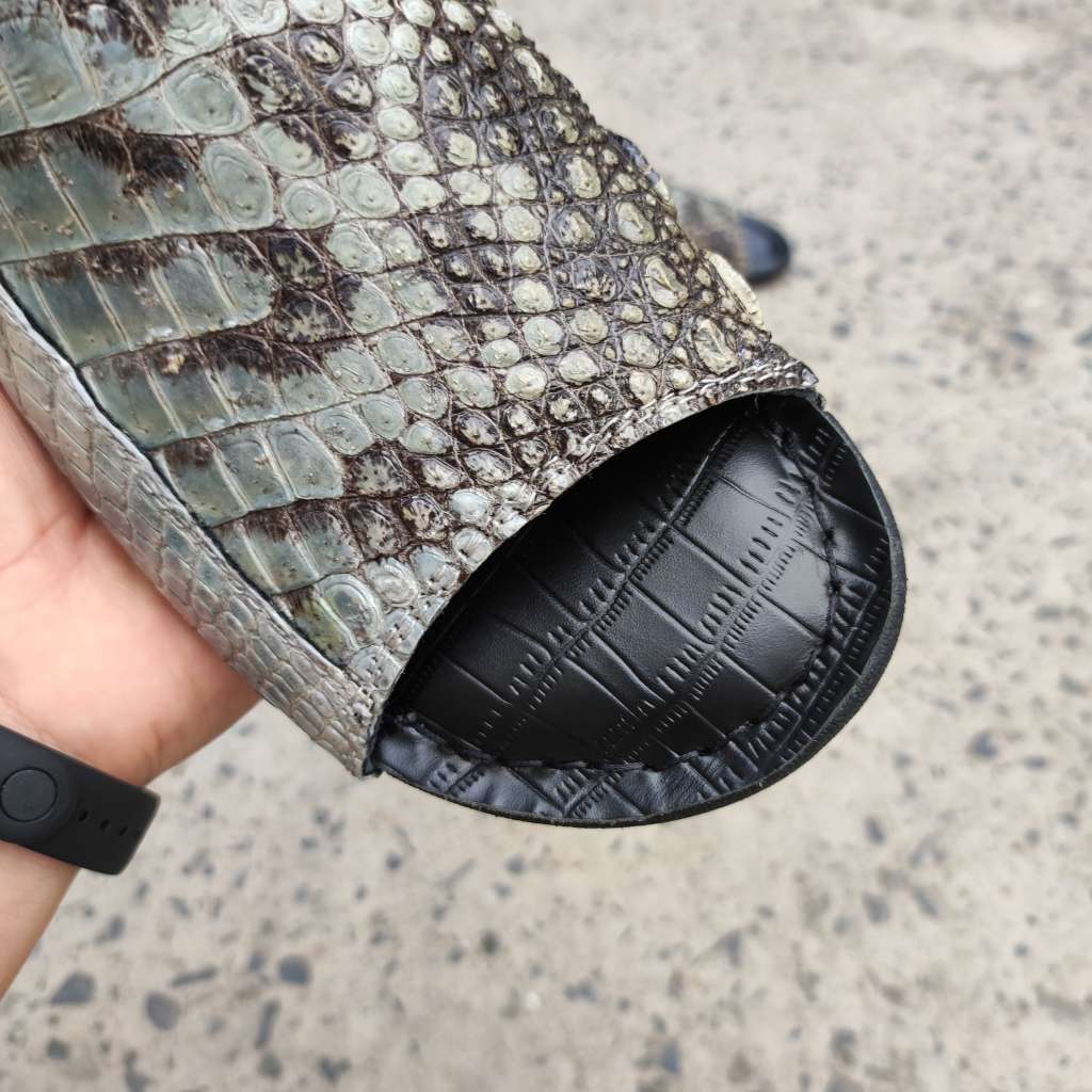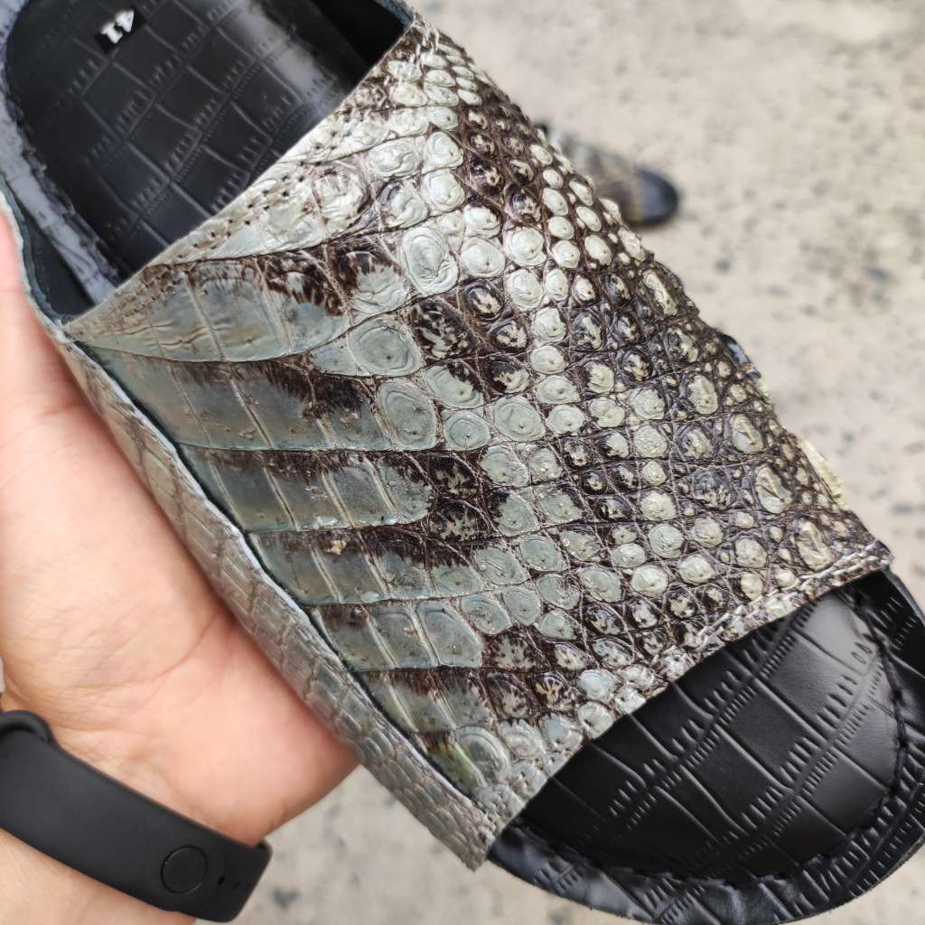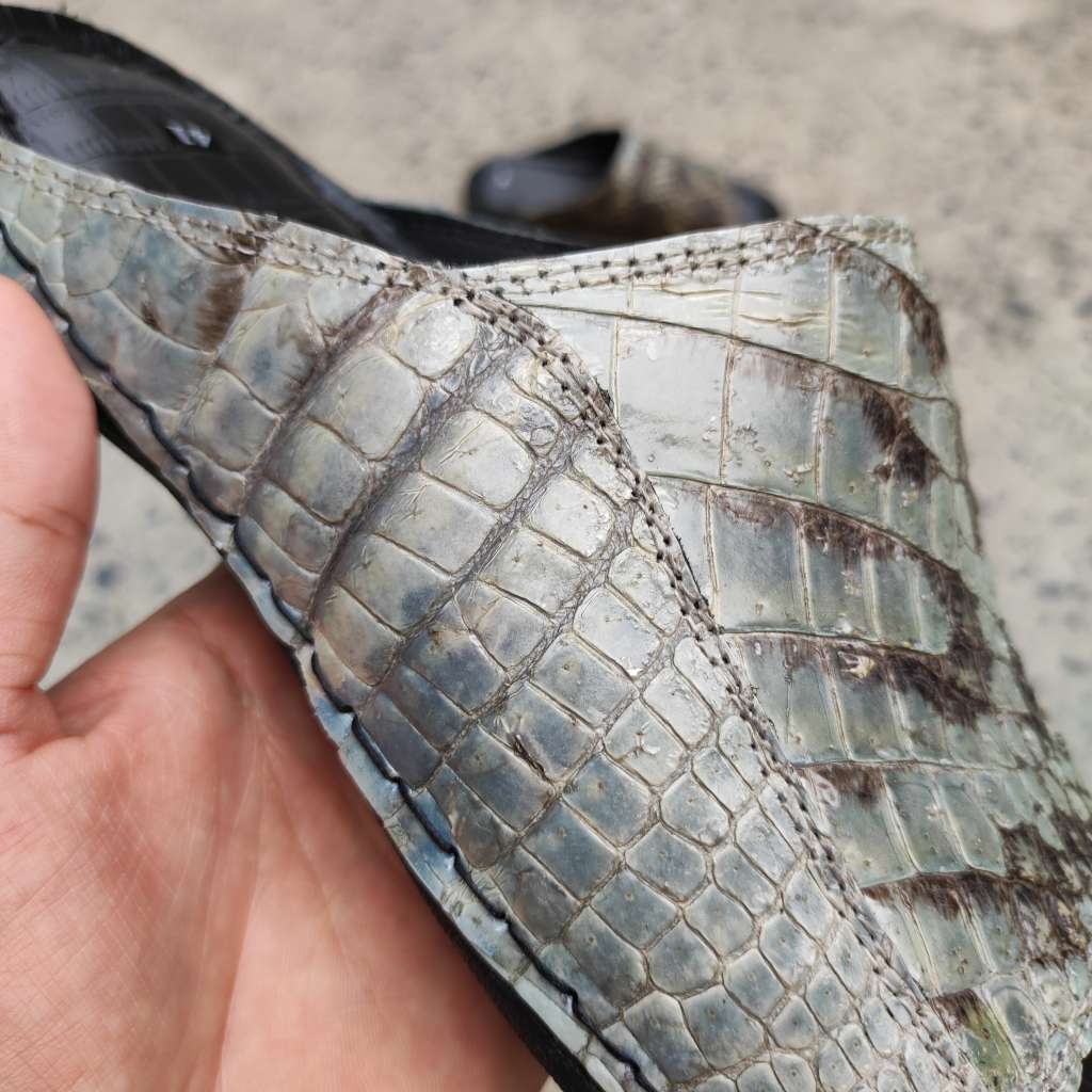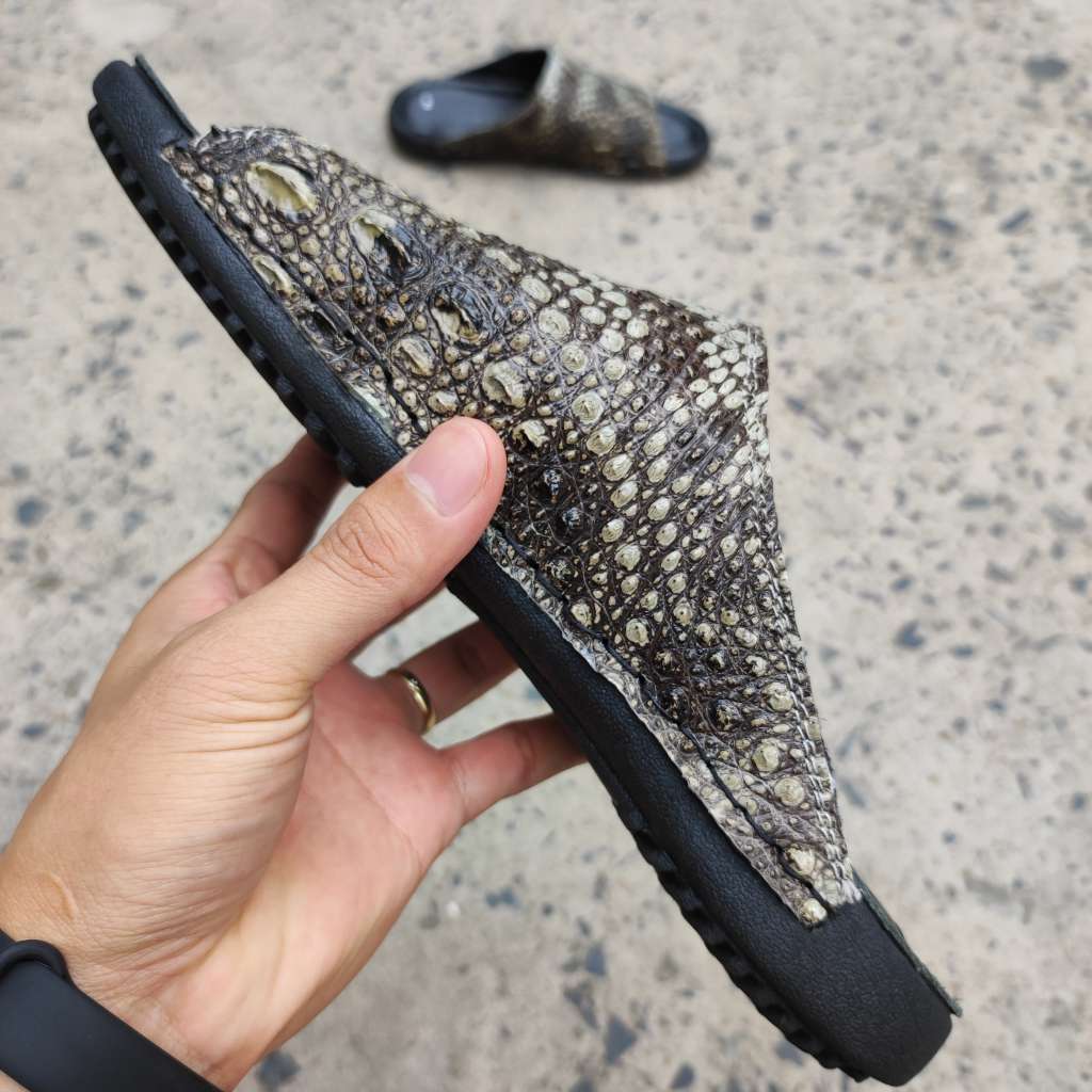 Da cá sấu nguyên thủy không thuộc màu. Còn chất thô sơ mộc mạc là nét đẹp đáng giá tạo nên đôi dép Đẳng cấp vua đầm lầy
