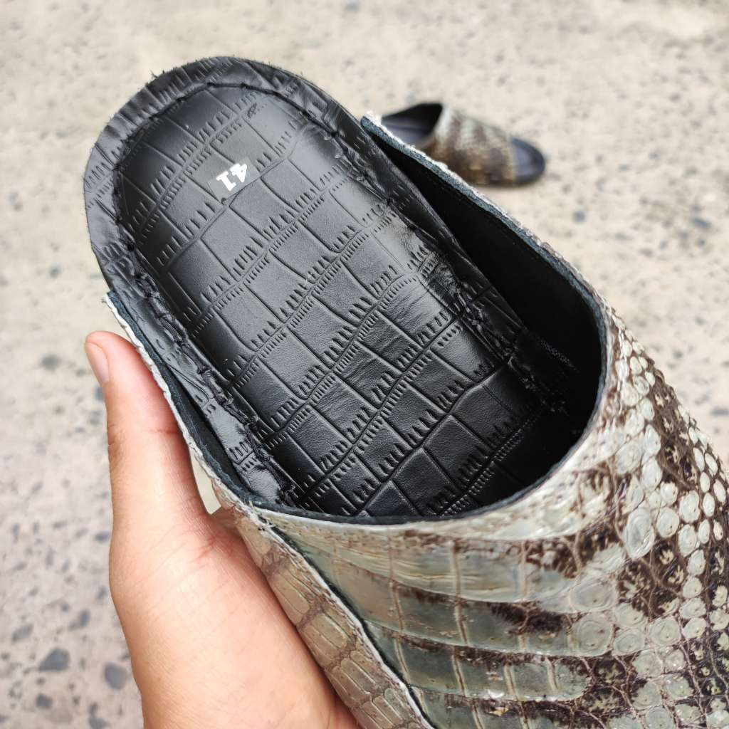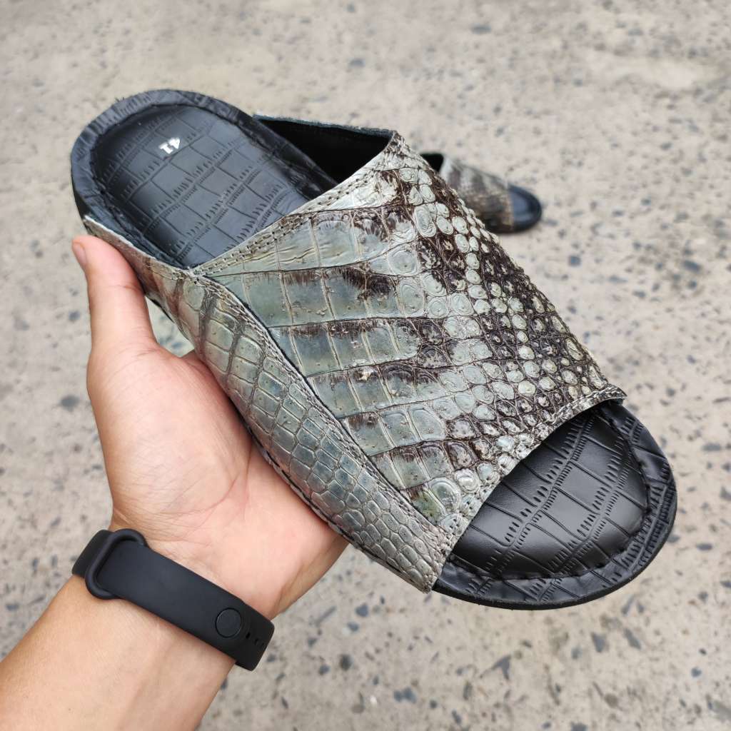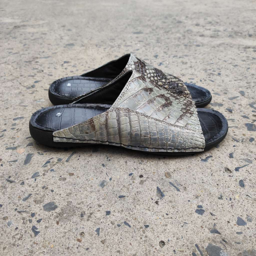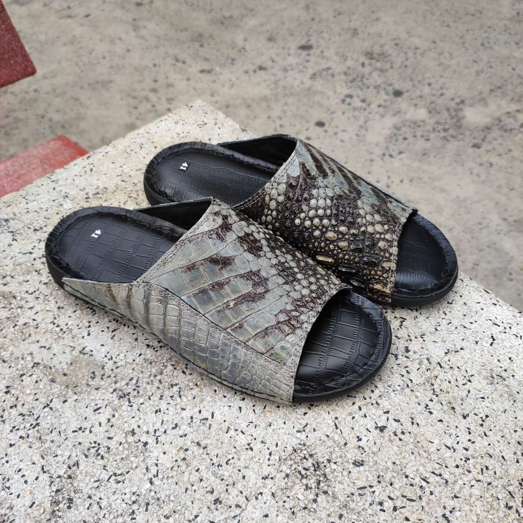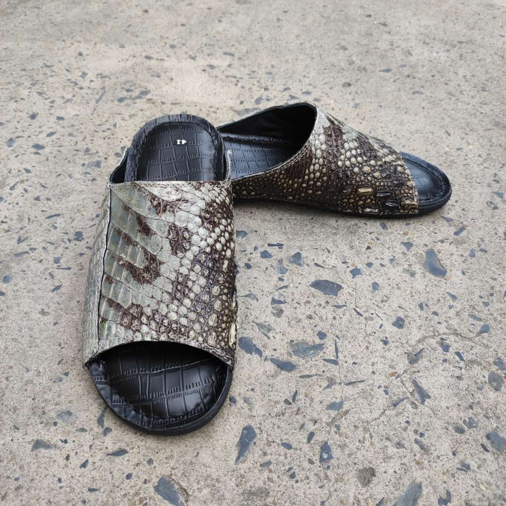Da cá sấu nguyên thủy không thuộc màu. Còn chất thô sơ mộc mạc là nét đẹp đáng giá tạo nên đôi dép Đẳng cấp vua đầm lầy
