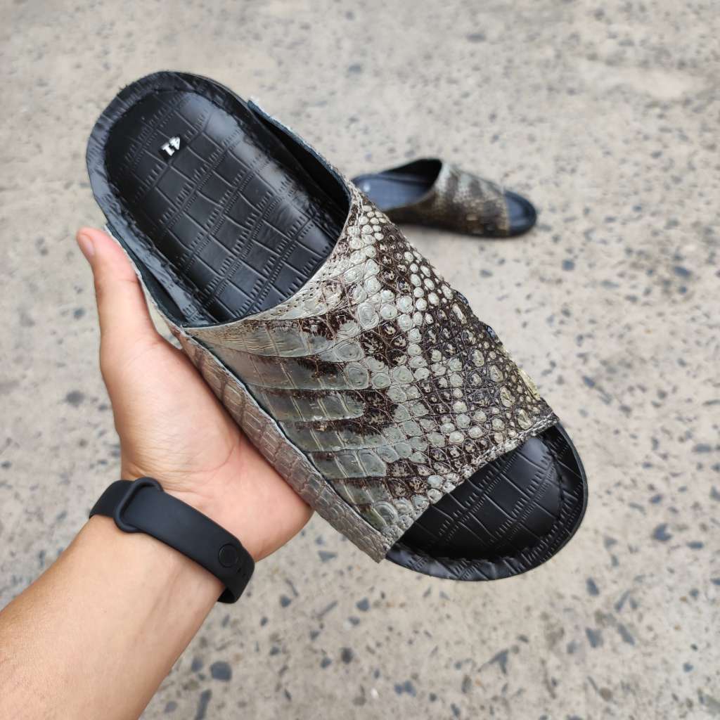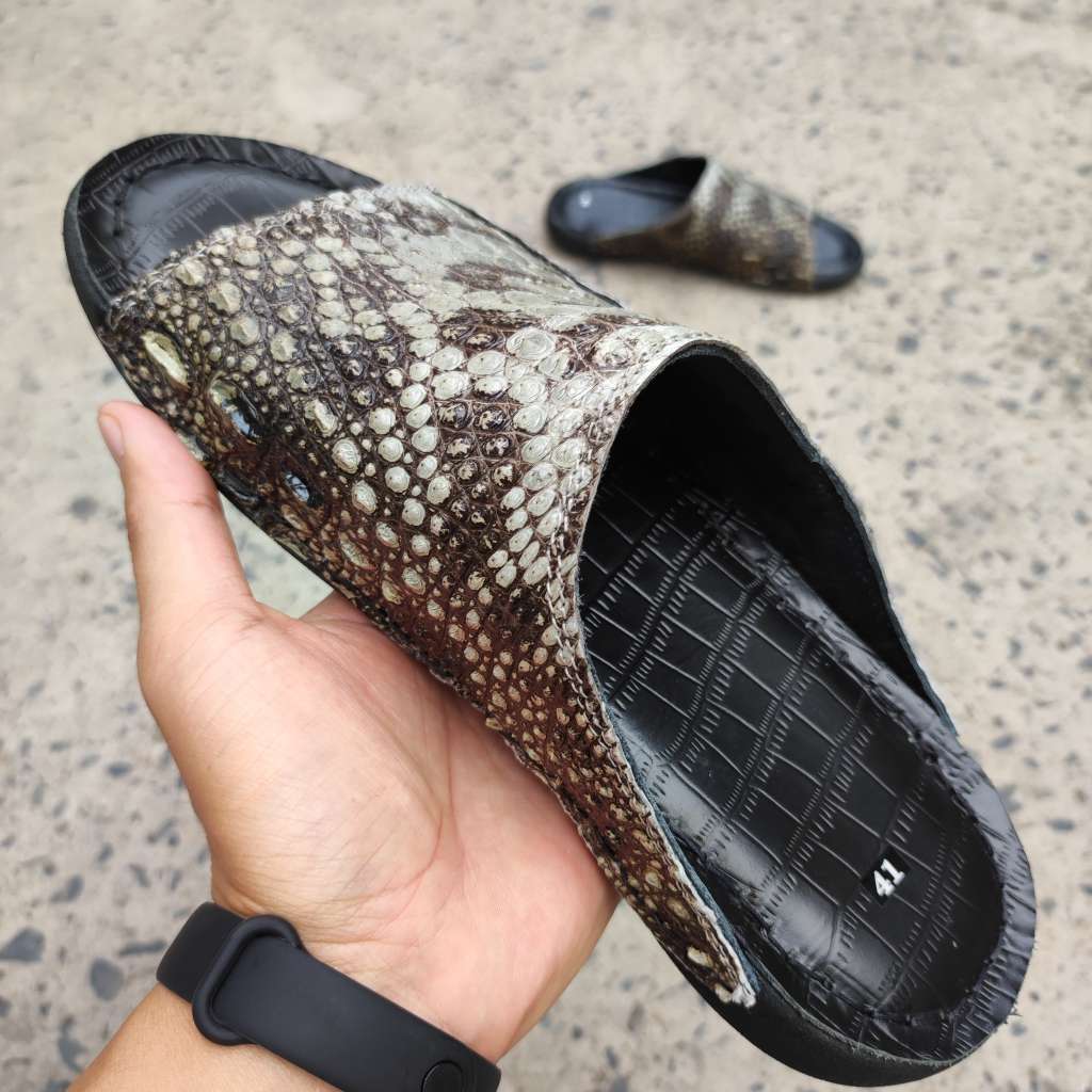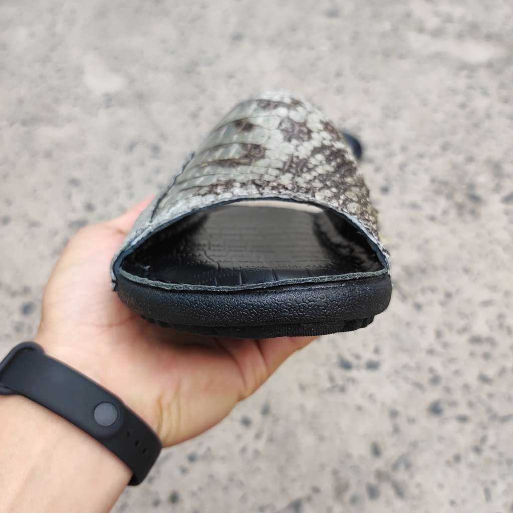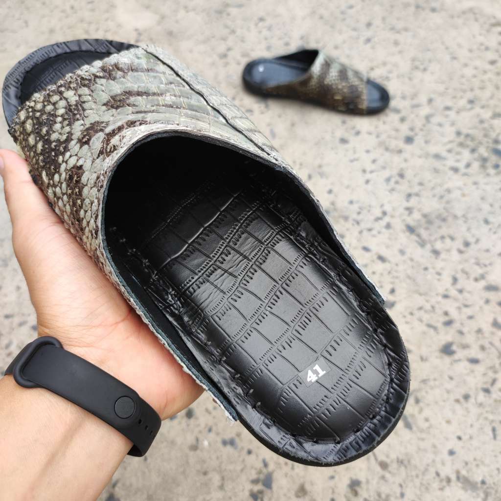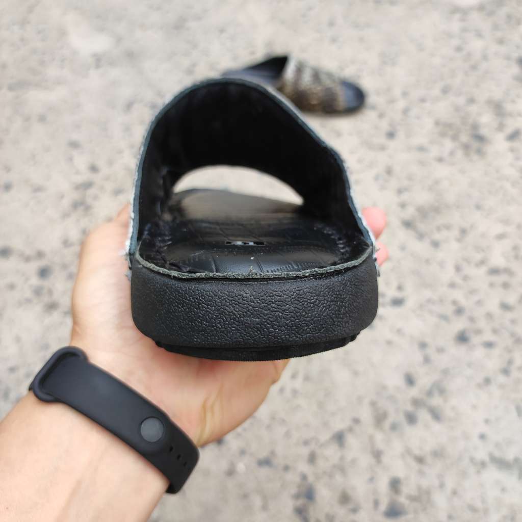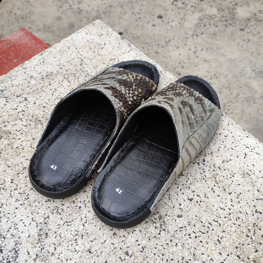 Da cá sấu nguyên thủy không thuộc màu. Còn chất thô sơ mộc mạc là nét đẹp đáng giá tạo nên đôi dép Đẳng cấp vua đầm lầy