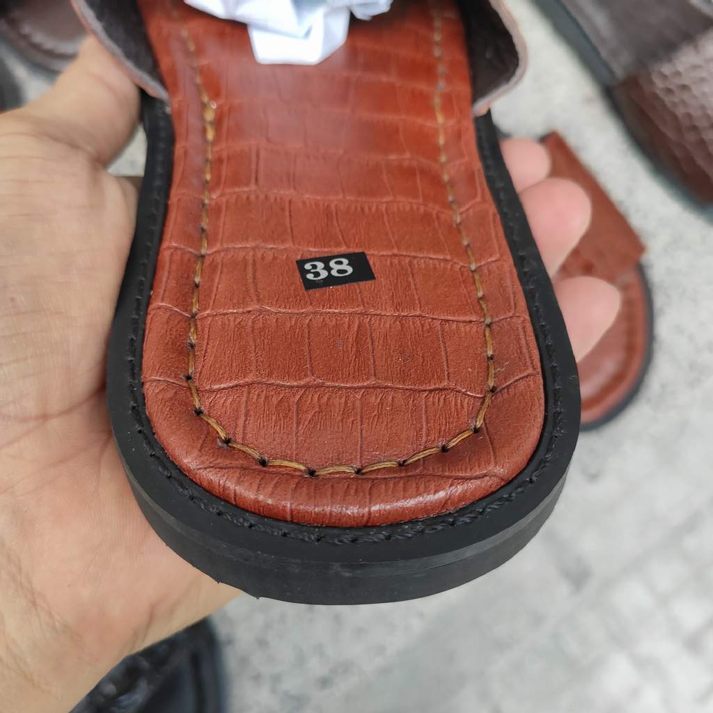 Video Dép ngang da bụng cá sấu đẹp tinh tế