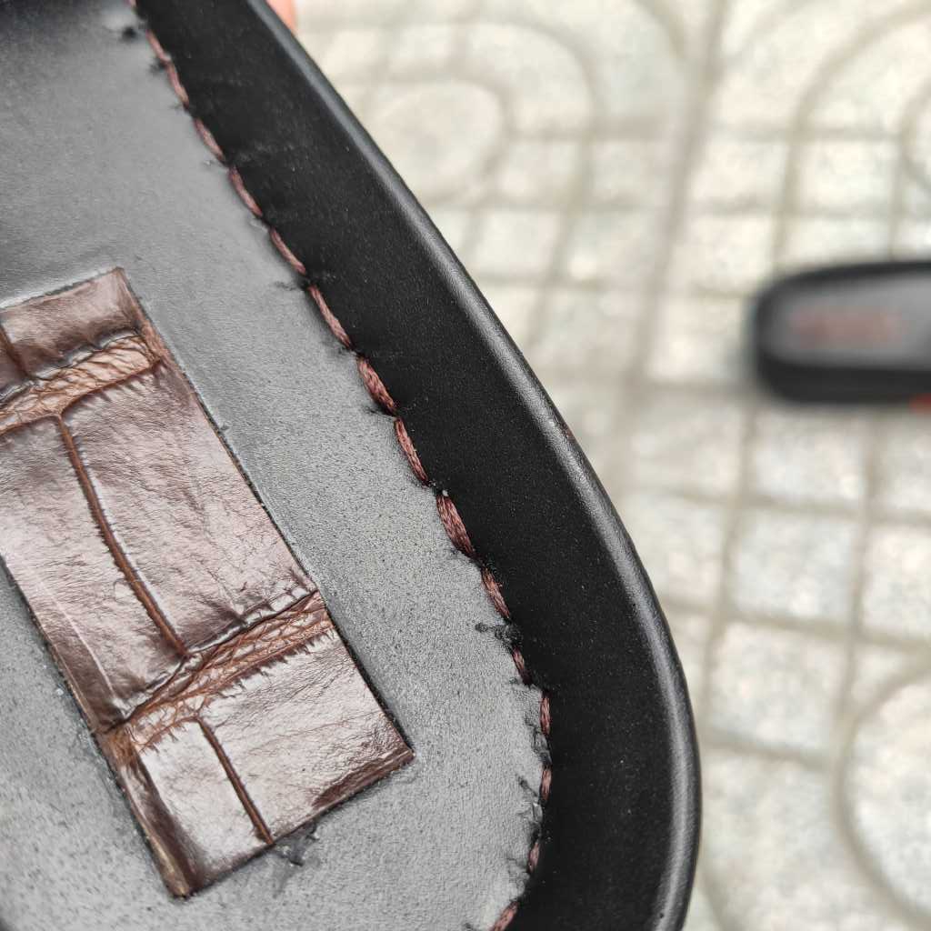 Chất liệu da cá sấu + da bò + cao su tự nhiên.