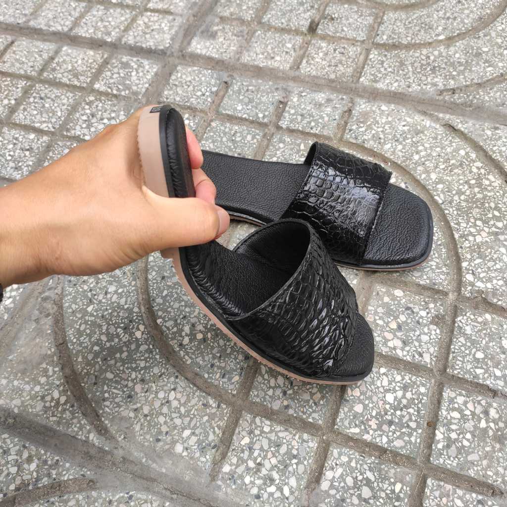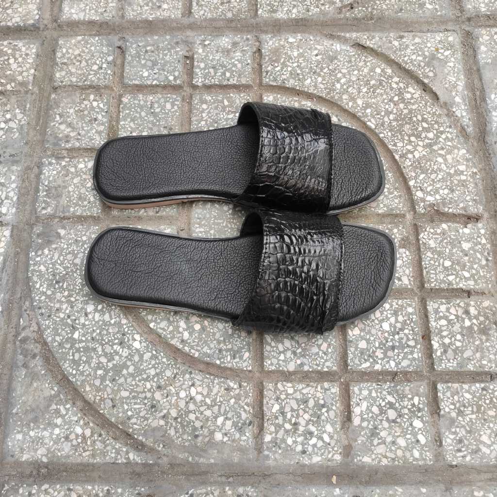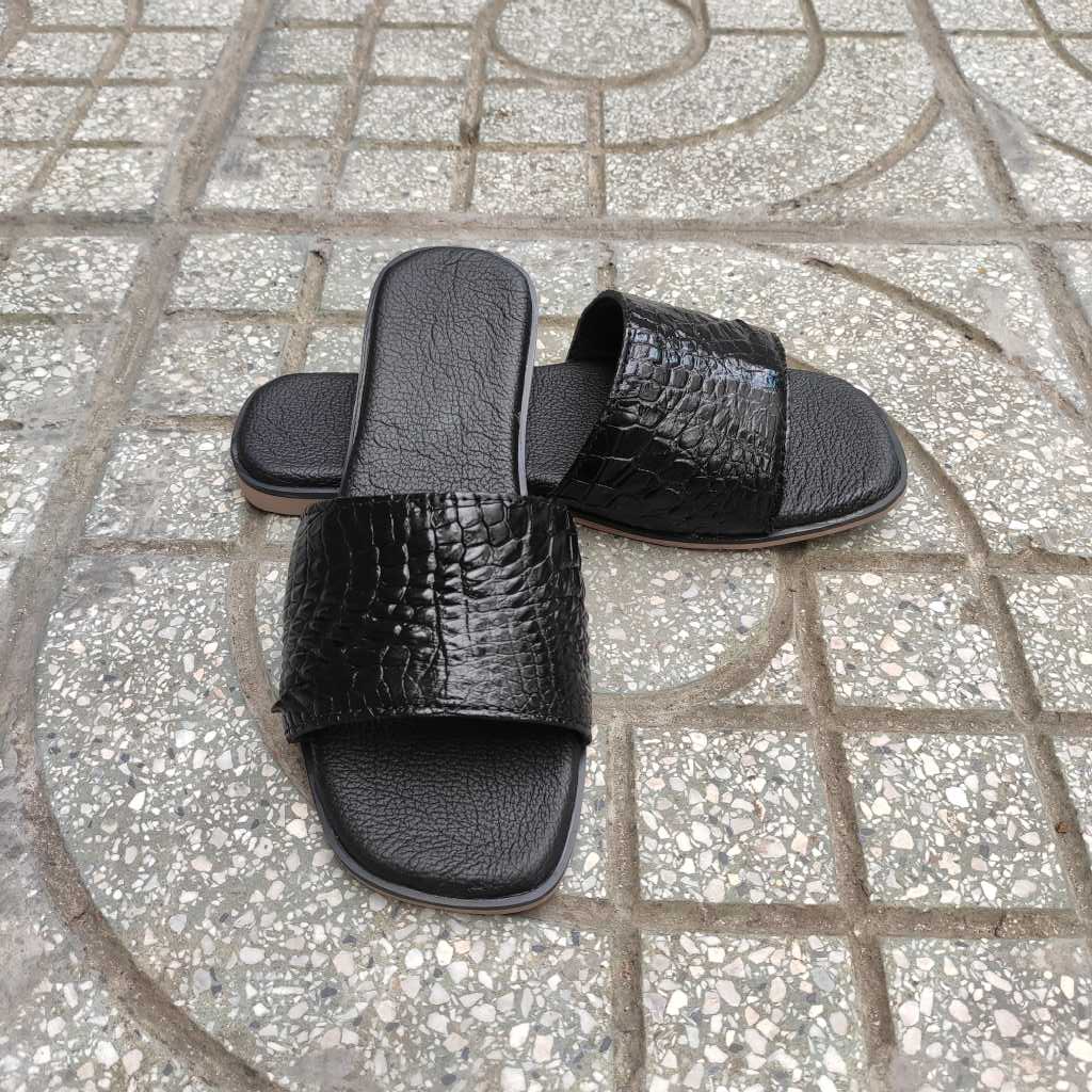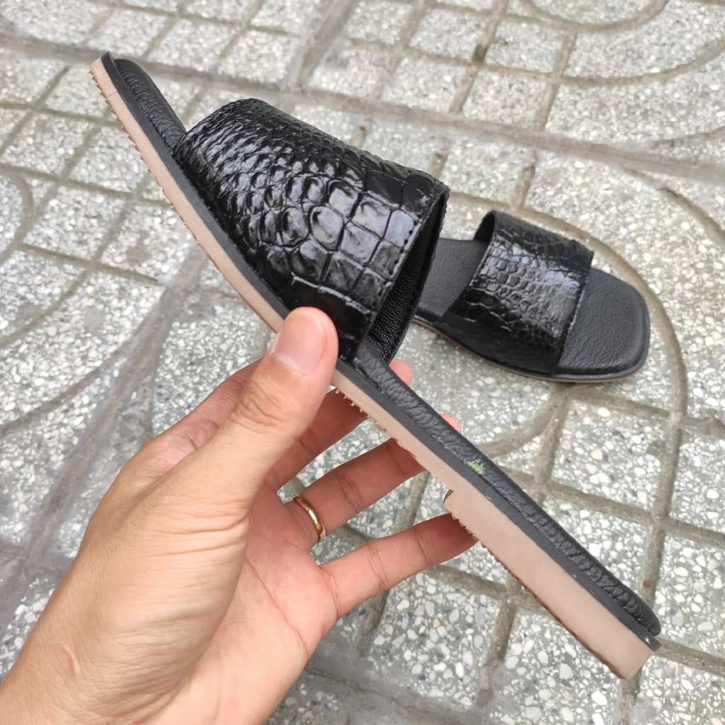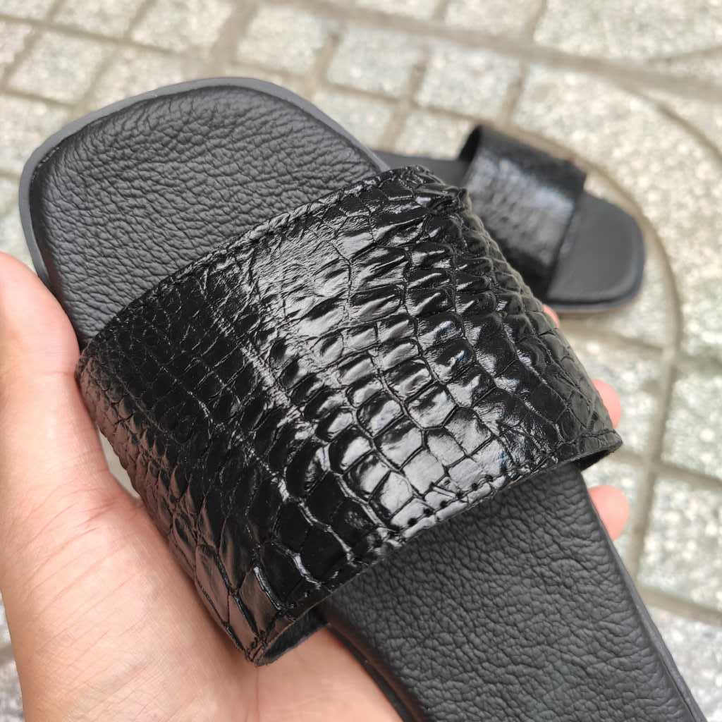 Mặt trên quai dép được làm từ da cá sấu 100%