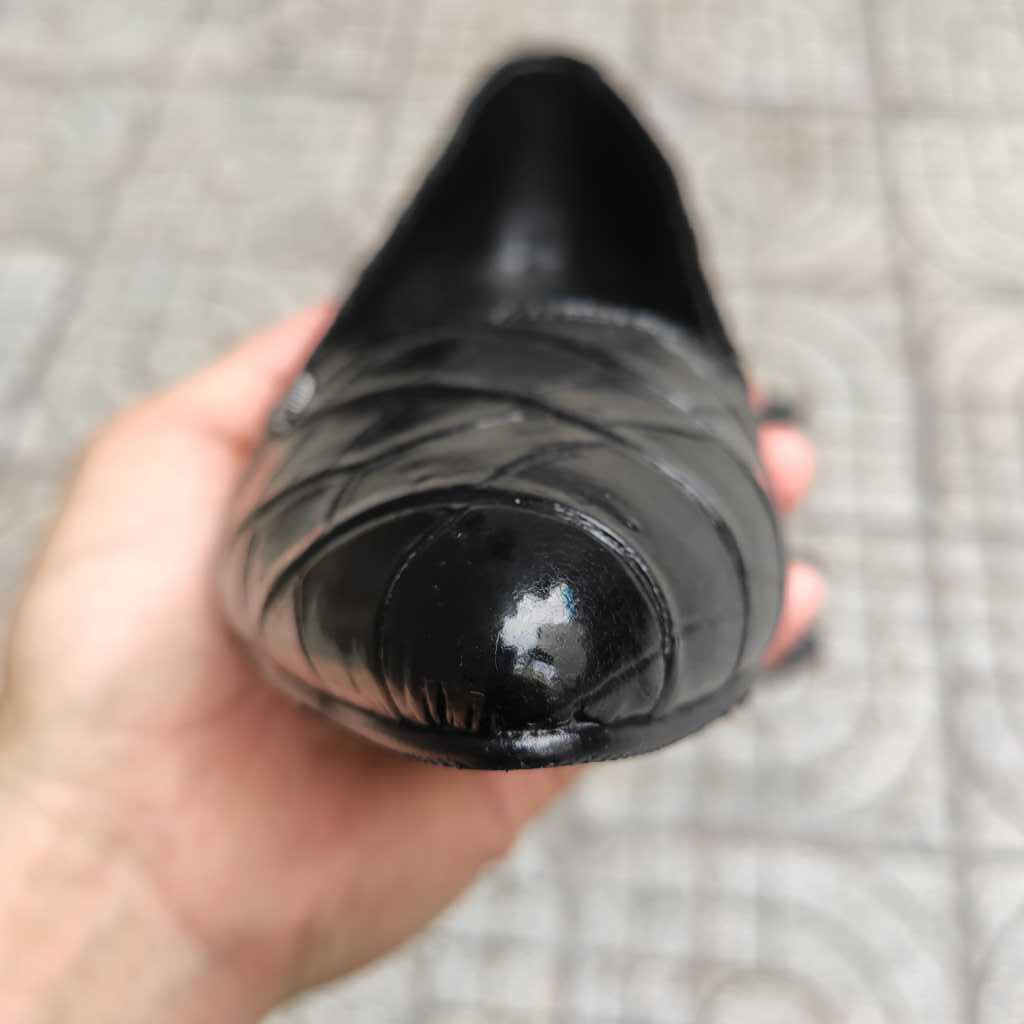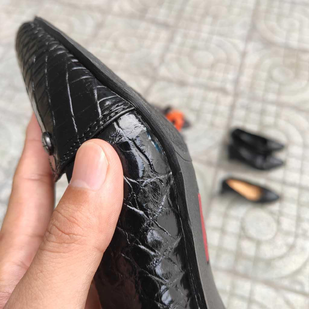 Toàn bộ mặt ngoài của giày làm bằng da bụng cá sấu