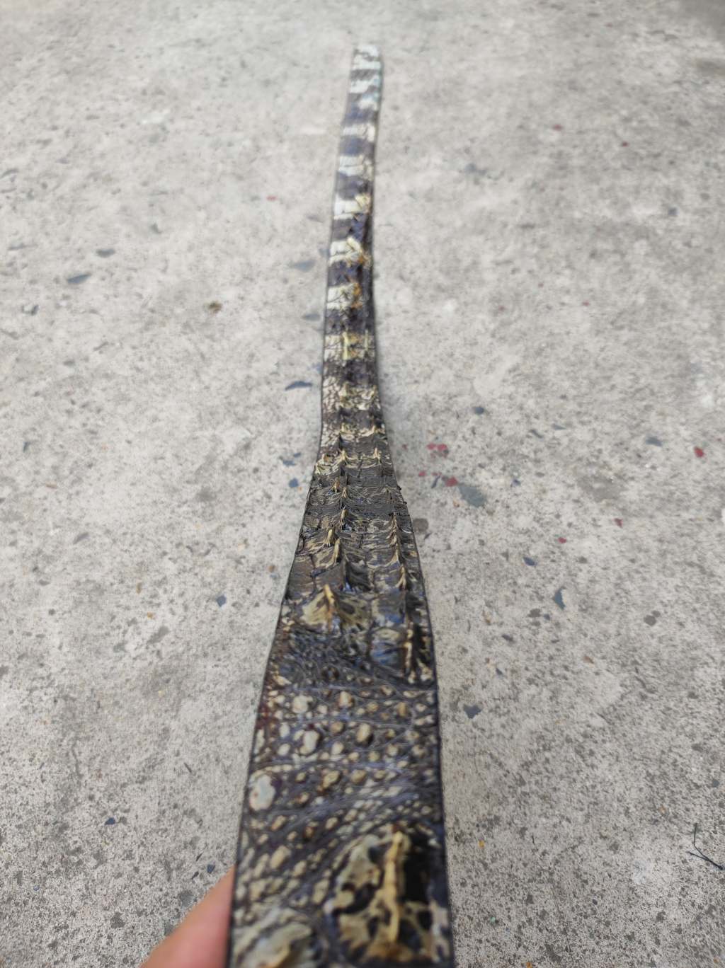 2. Nếu sản phẩm làm từ da vây đuôi, đây là sản phẩm rất khó làm giả vì vây đuôi cá sấu có hình tam giác được ép nằm sát bề mặt da, vây mềm nhưng rất chắc, nếu dùng tay để cố tình xé rách nó quả là điều không đơn giản.
