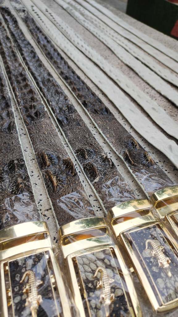 Da cá sấu là một trong những sản phẩm đắt đỏ bậc nhất hiện nay. Dẫn đầu trong số 5 nguyên liệu được sử dụng làm sản phẩm thời trang. Những chiếc thắt lưng được làm từ da cá sấu có độ đàn hồi và độ bền rất cao.