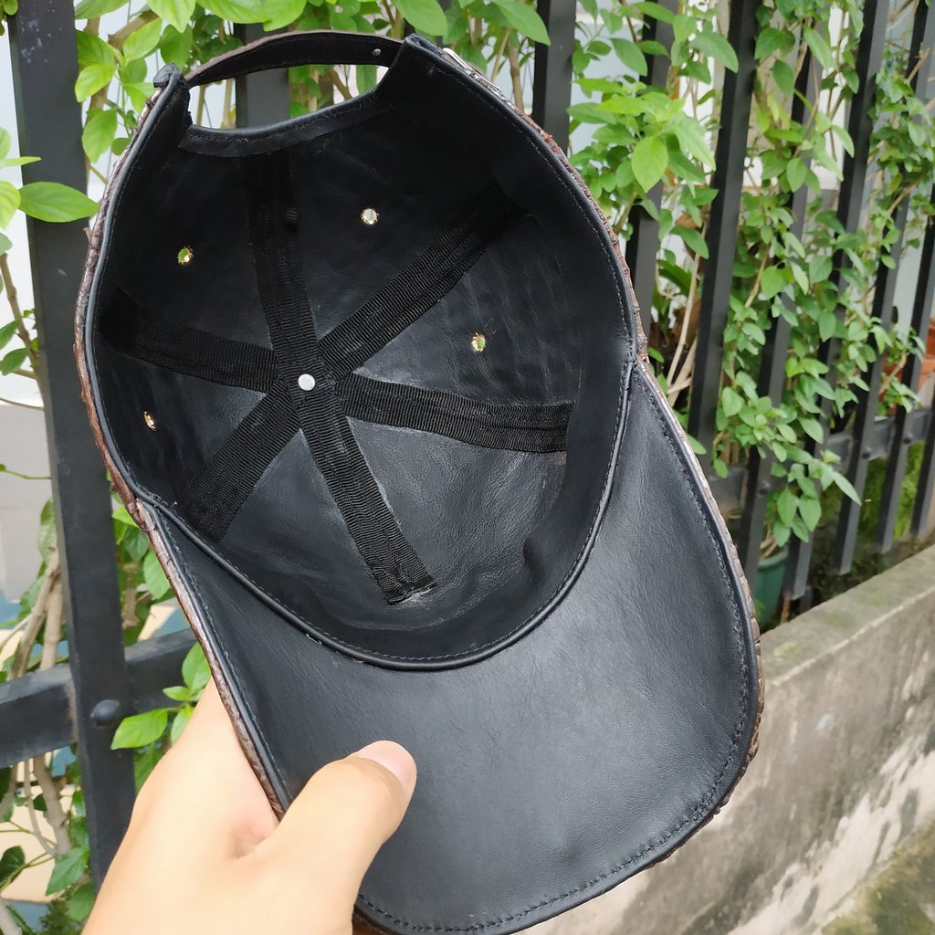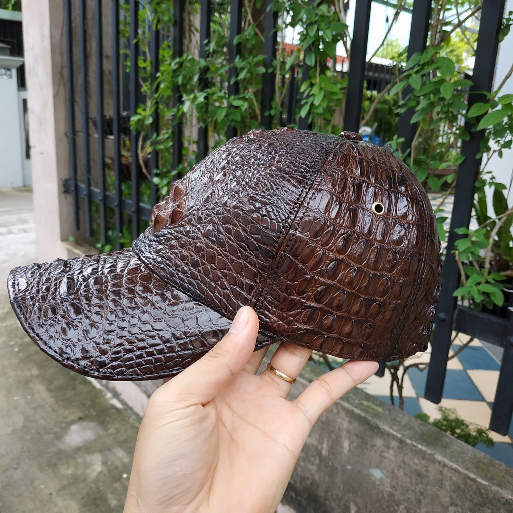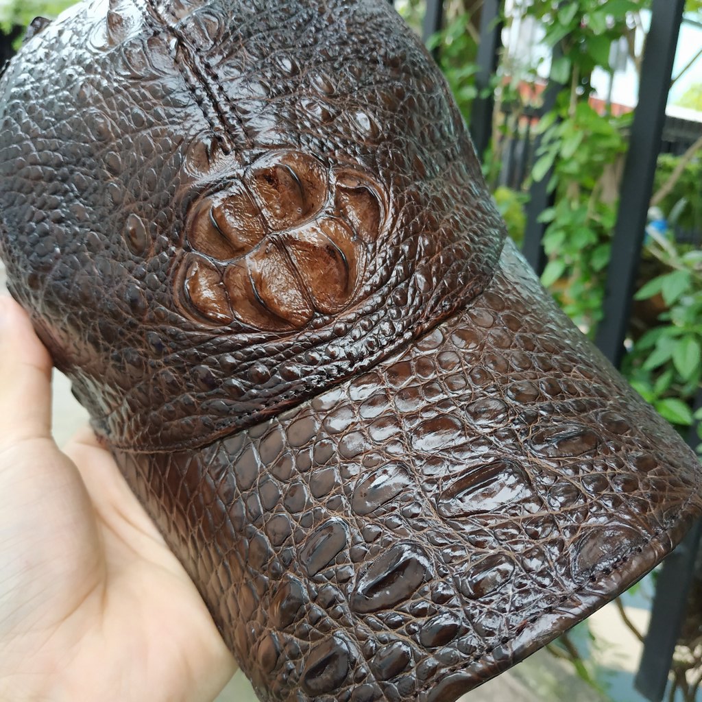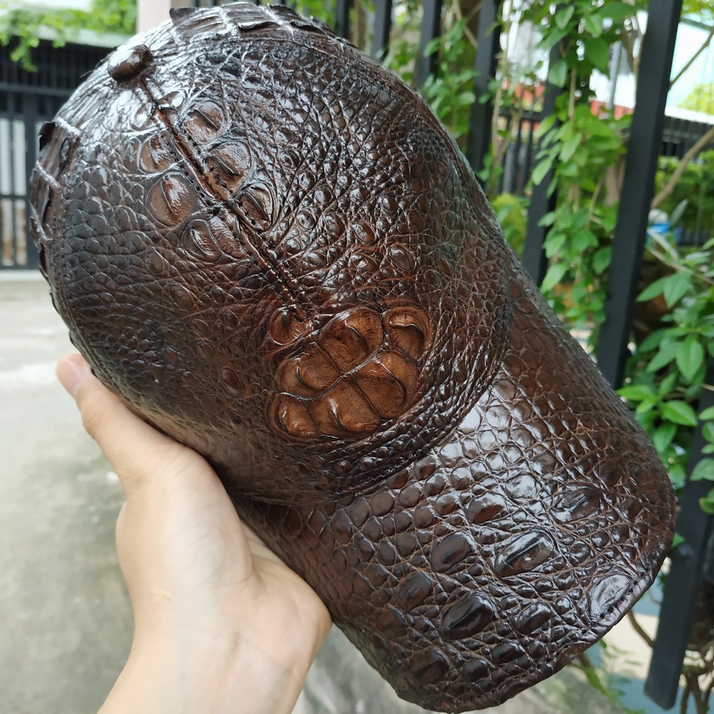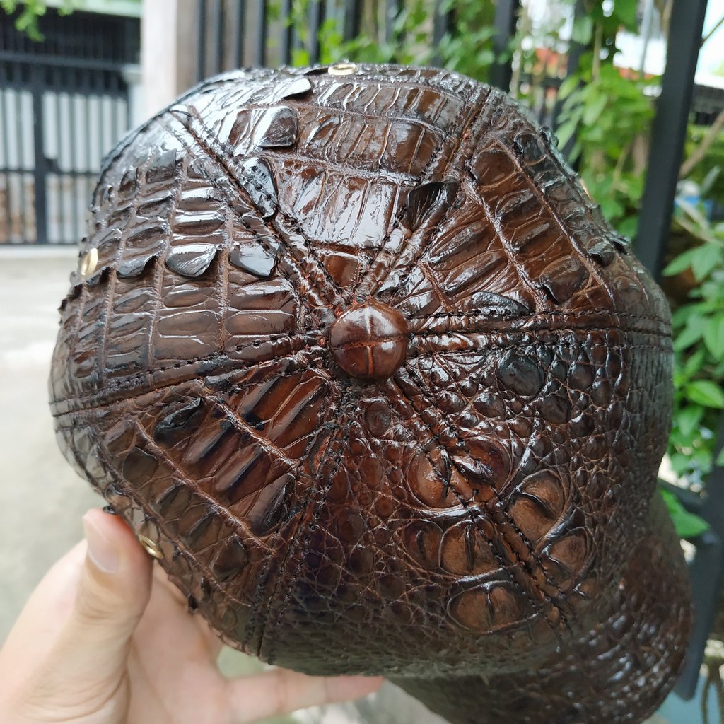 Nón/mũ được làm từ nhiều phần da cá sấu kết hợp hài hòa tạo nên vẻ đẹp độc đáo. Mặt trước chính giữa của nón được tạo bởi phần gù cá sấu đẹp tinh tế và đẳng cấp!