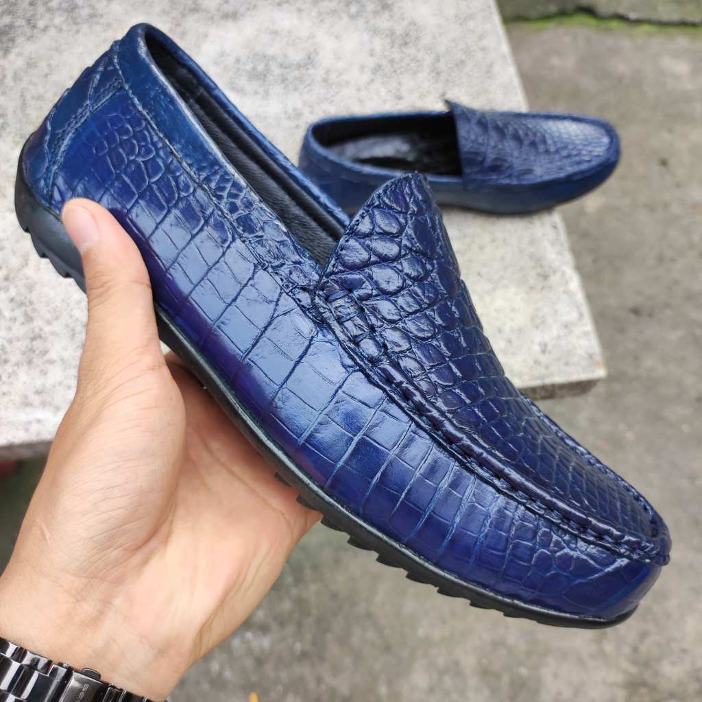 VIDEO GIÀY LƯỜI DA BỤNG CÁ SẤU XANH NAVY