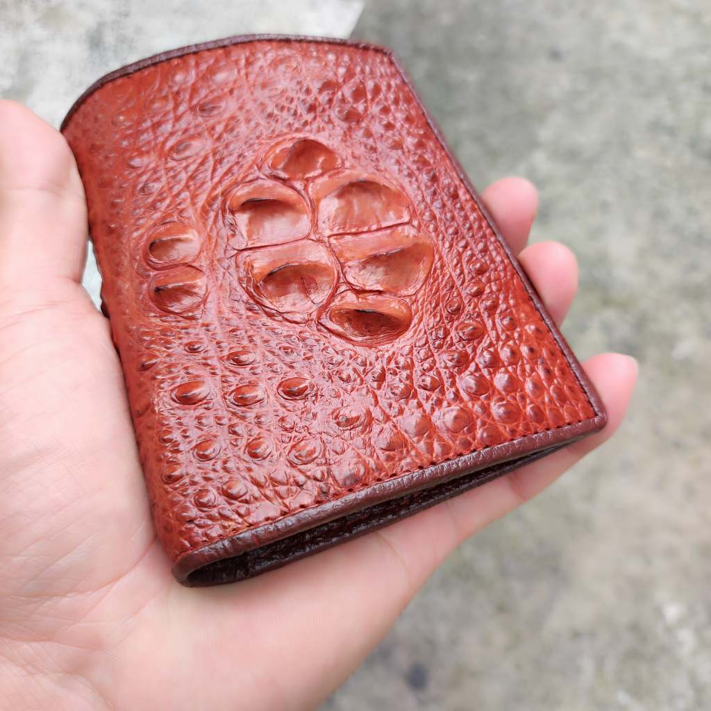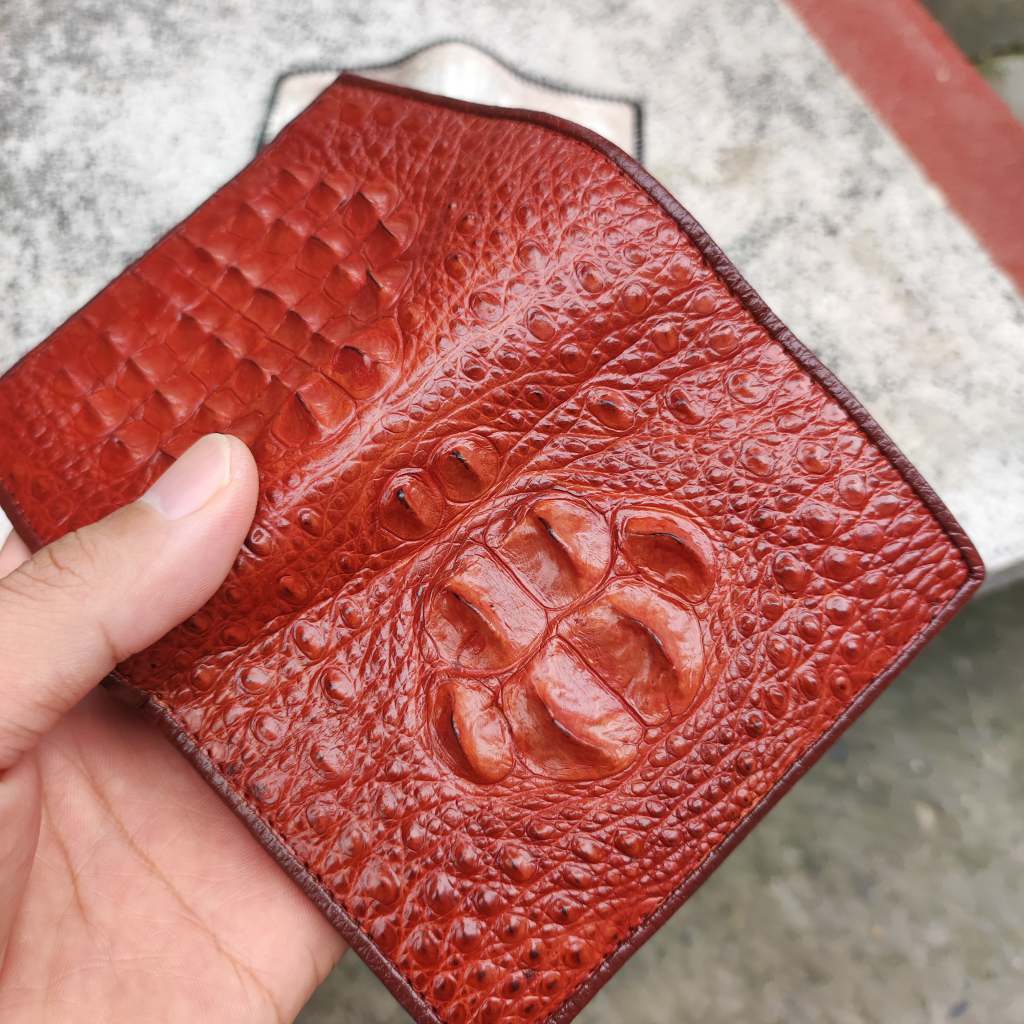 - Mã ví VS21DND bạn đang xem được làm từ gù xuống lưng của cá sấu lớn, những cái gù tròn nổi ở mặt trước và những hàng gai lưng chạy song song ở mặt sau của ví đều đã hình thành xương của cá sấu. Nên nếu dùng ngón tay ấn vào gù và gai lưng sẽ thấy rất cứng vì đó là xương cá. Còn nếu là hàng da bò dập vân cá sấu/giả da cá sấu thì những cái gù và hàng gai lưng được khuôn tạo hình dập lên từ da bò (bản chất vẫn là da không phải là xương) nên sẽ mềm, ấn vào có độ nún chứ không chắc chắn.