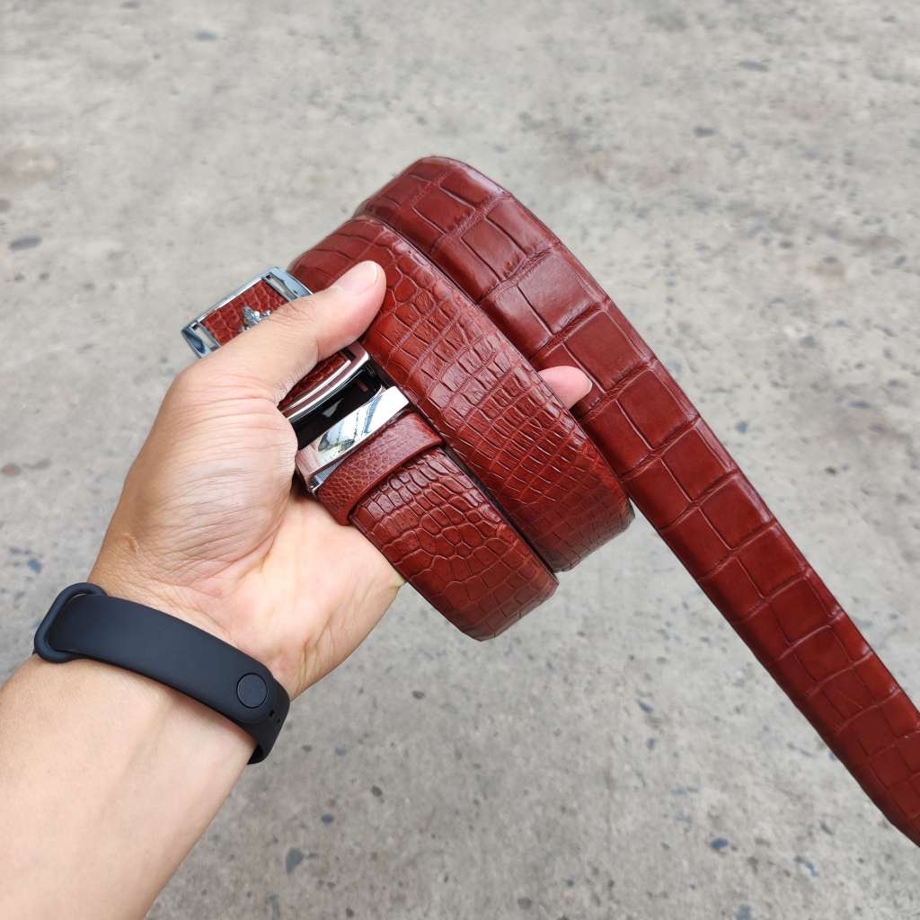 Video thực tế Thắt Lưng Da Bụng Cá Sấu Liền Nguyên Tấm Cao Cấp