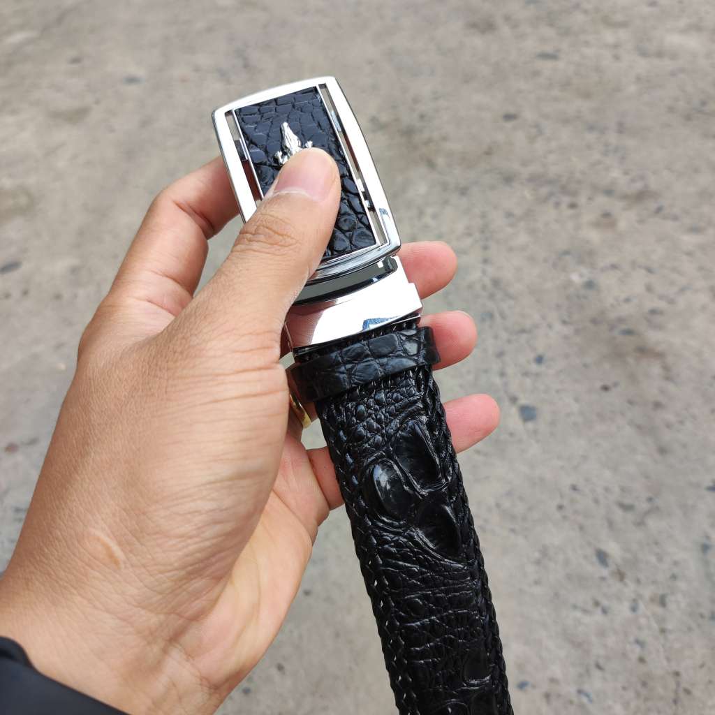 Video thực tế Thắt Lưng Da Cá Sấu Liền Nguyên Con 4cm