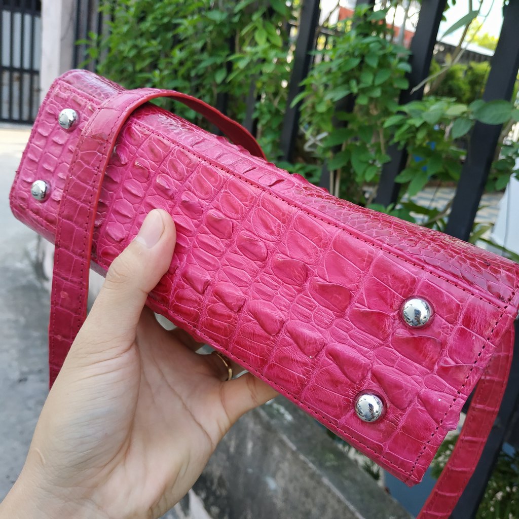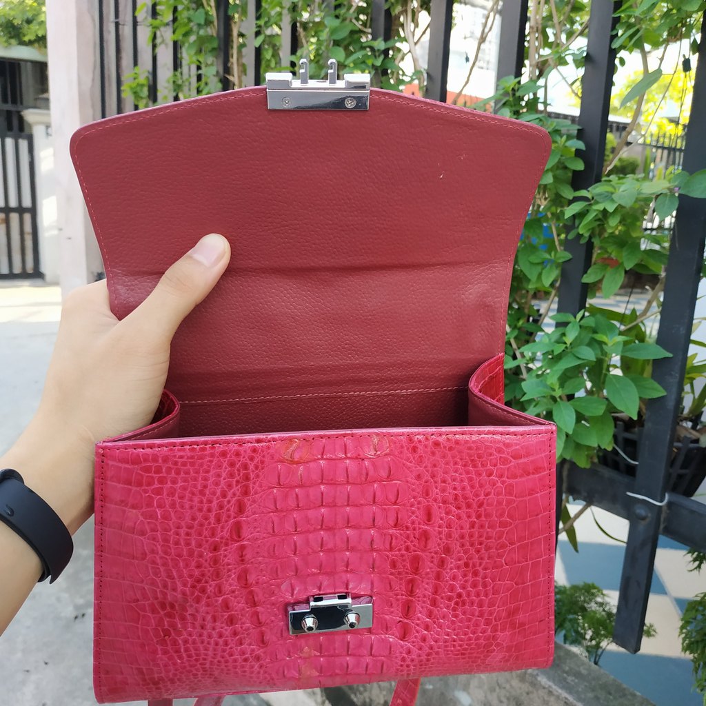 Túi được làm liền mạch nguyên tấm da cá sấu lớn rất đẹp và chắc chắn.