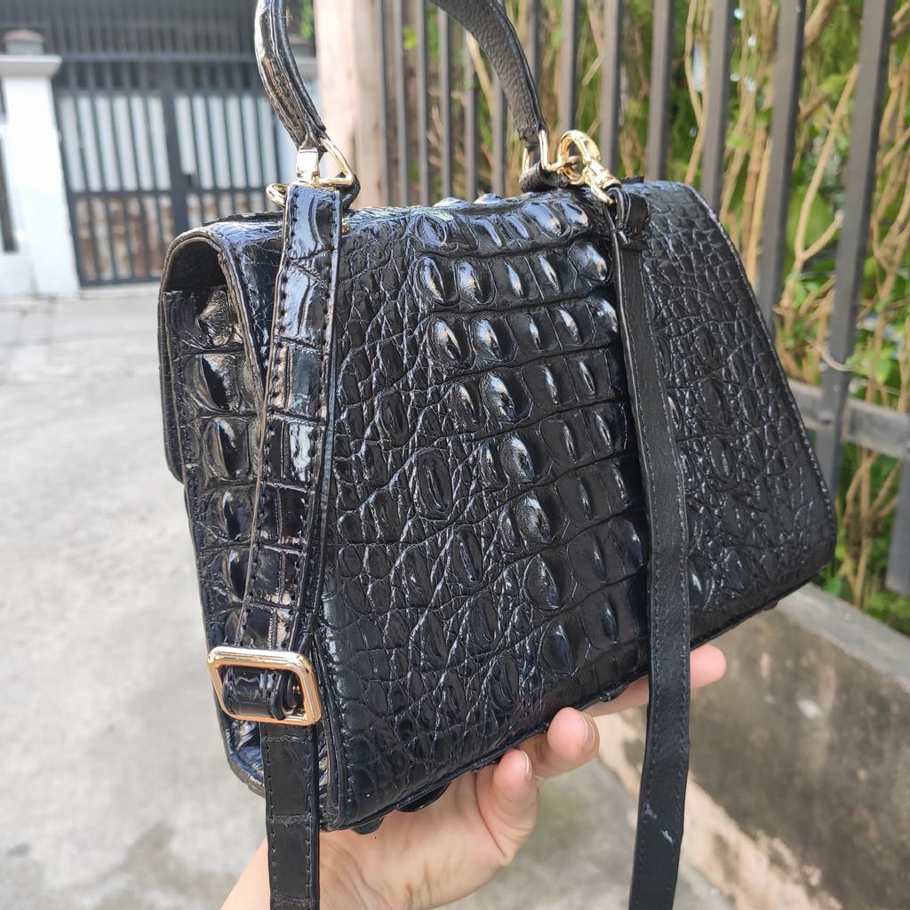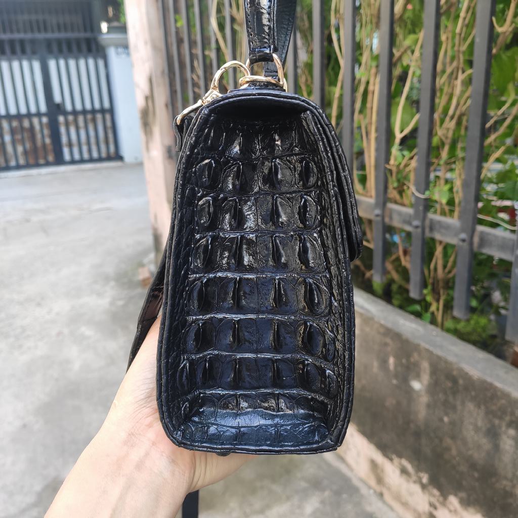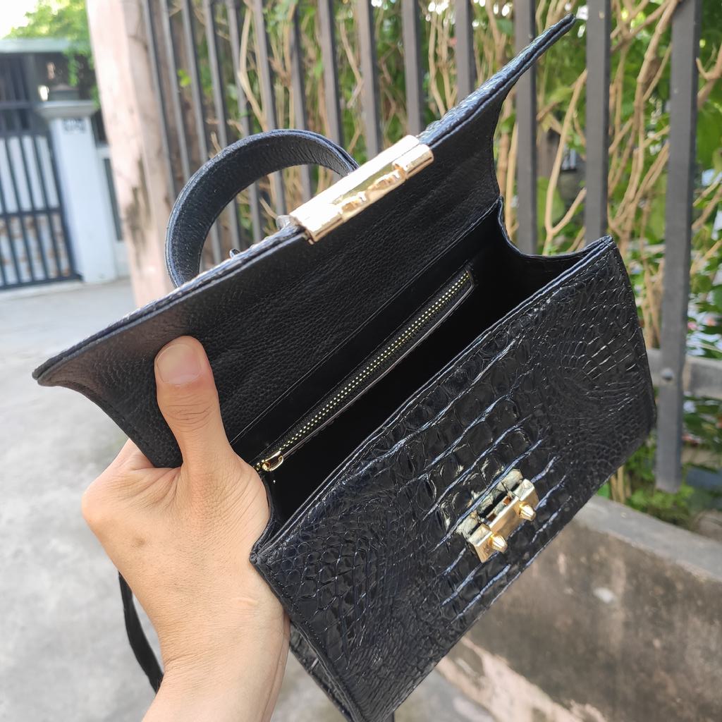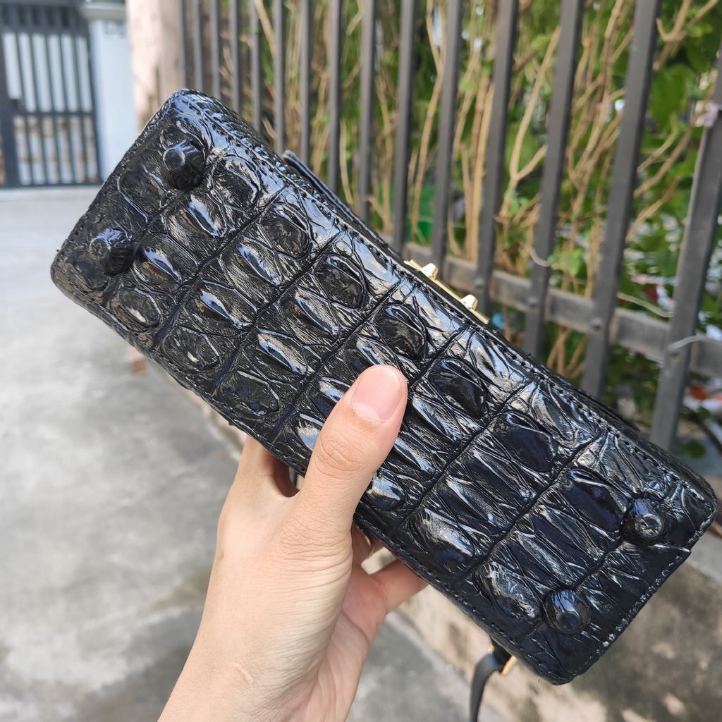 Túi được làm liền mạch nguyên tấm da cá sấu lớn rất đẹp và chắc chắn.
