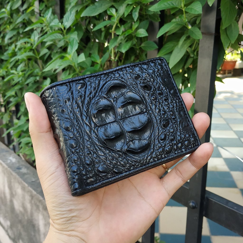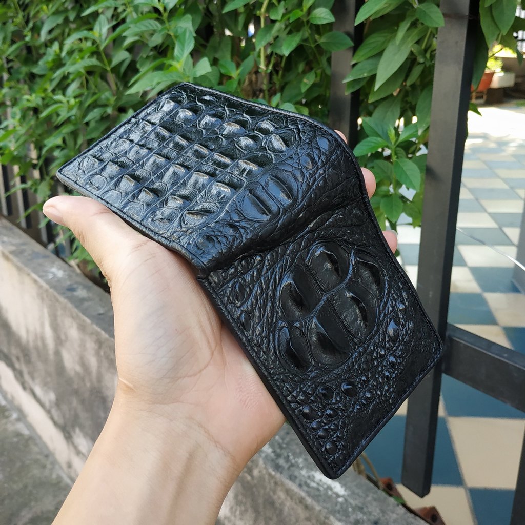 - Mã ví V22D bạn đang xem được làm từ gù xuống lưng của cá sấu lớn, những cái gù tròn nổi ở mặt trước và những hàng gai lưng chạy song song ở mặt sau của ví đều đã hình thành xương của cá sấu. Nên nếu dùng ngón tay ấn vào gù và gai lưng sẽ thấy rất cứng vì đó là xương cá. Còn nếu là hàng da bò dập vân cá sấu/giả da cá sấu thì những cái gù và hàng gai lưng được khuôn tạo hình dập lên từ da bò (bản chất vẫn là da không phải là xương) nên sẽ mềm, ấn vào có độ nún chứ không chắc chắn.