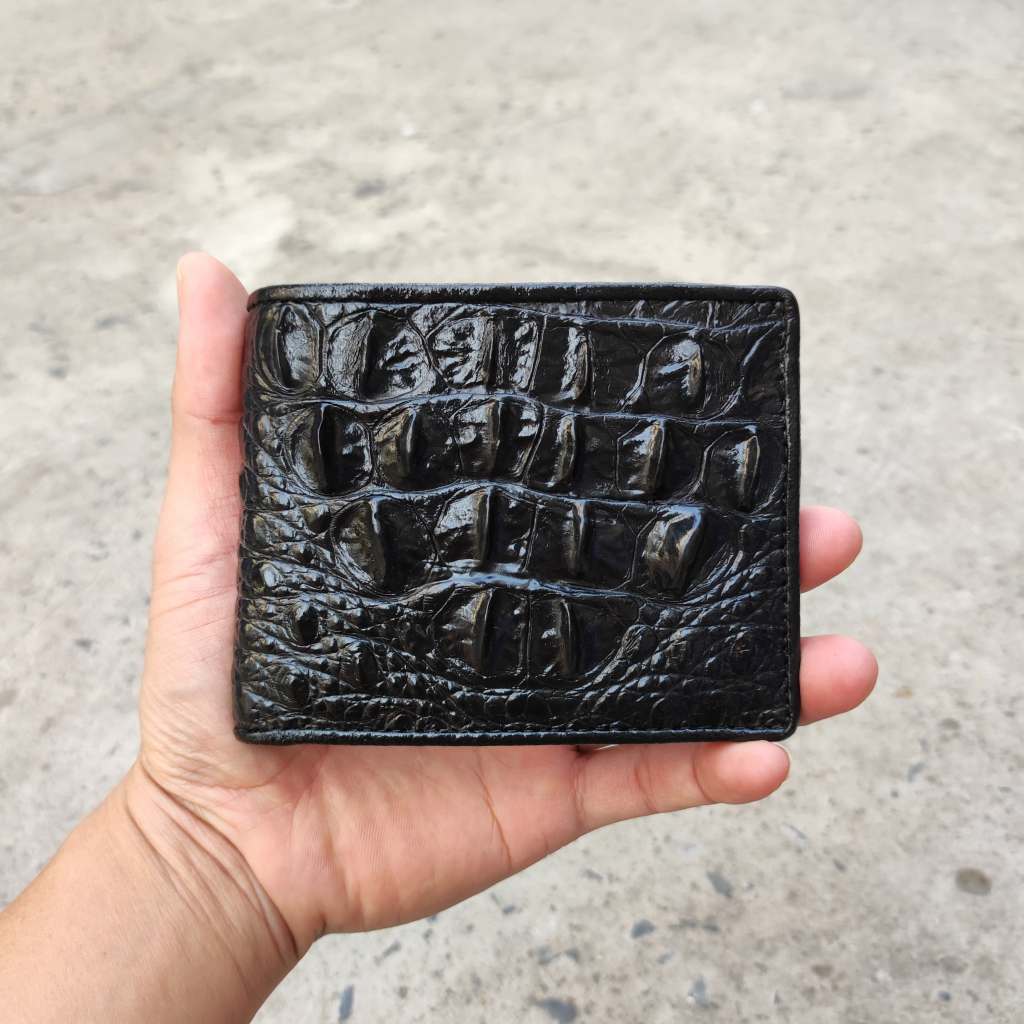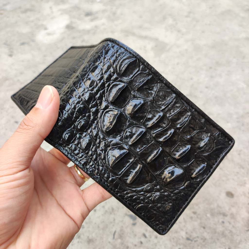 - Vậy cơ bản là dùng ngón tay ấn vào những hàng gai lưng trên bề mặt ví. Nếu cứng và chắn chắn sẽ là cá sấu thật, còn hàng gai mềm sẽ là ví da bò dập vân cá sấu/giả da cá sấu. Với cá sấu thật gai càng nhô lên cao thì xương càng cứng.