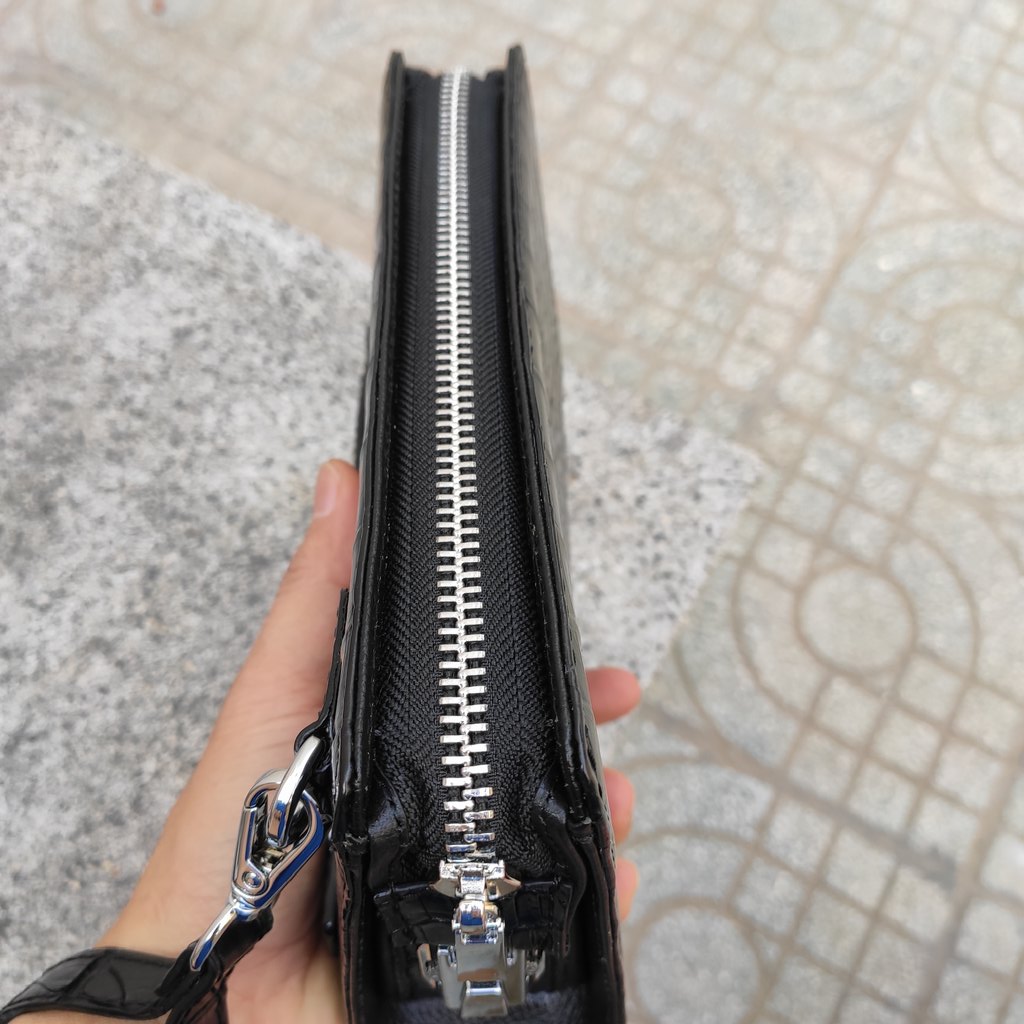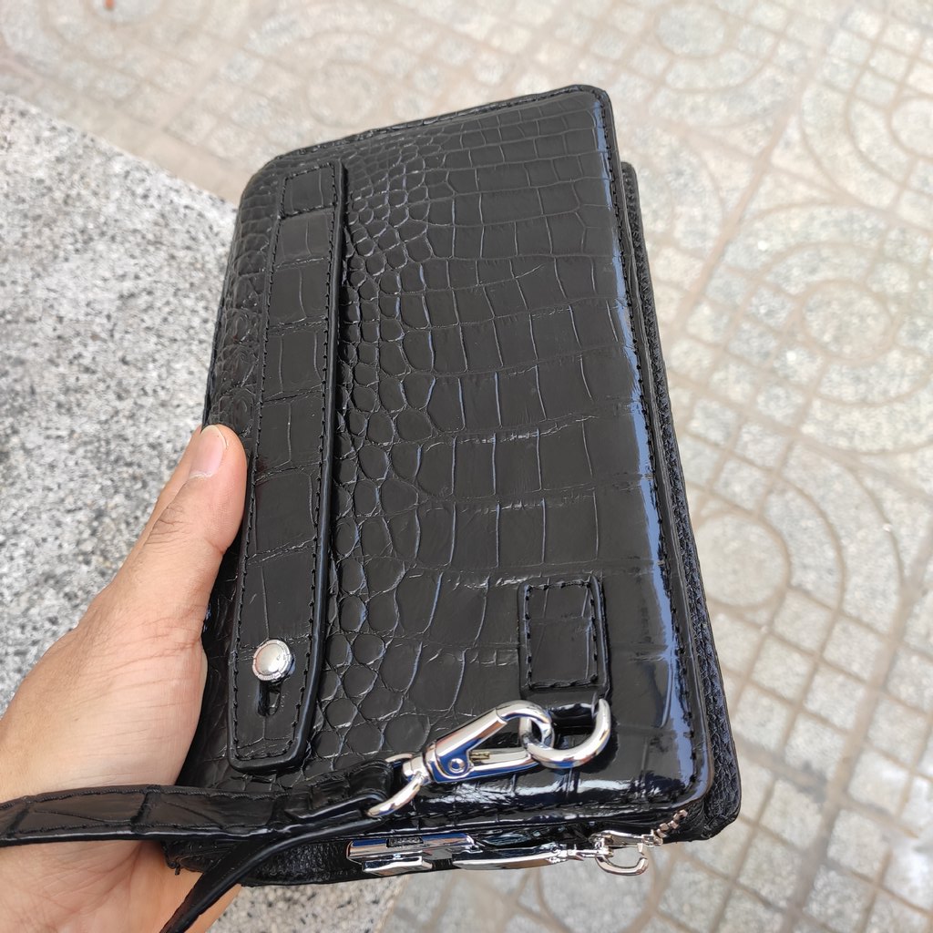 Ví Clutch cầm tay da bụng cá sấu màu đen (CÓ KHÓA SỐ BẢO MẬT)