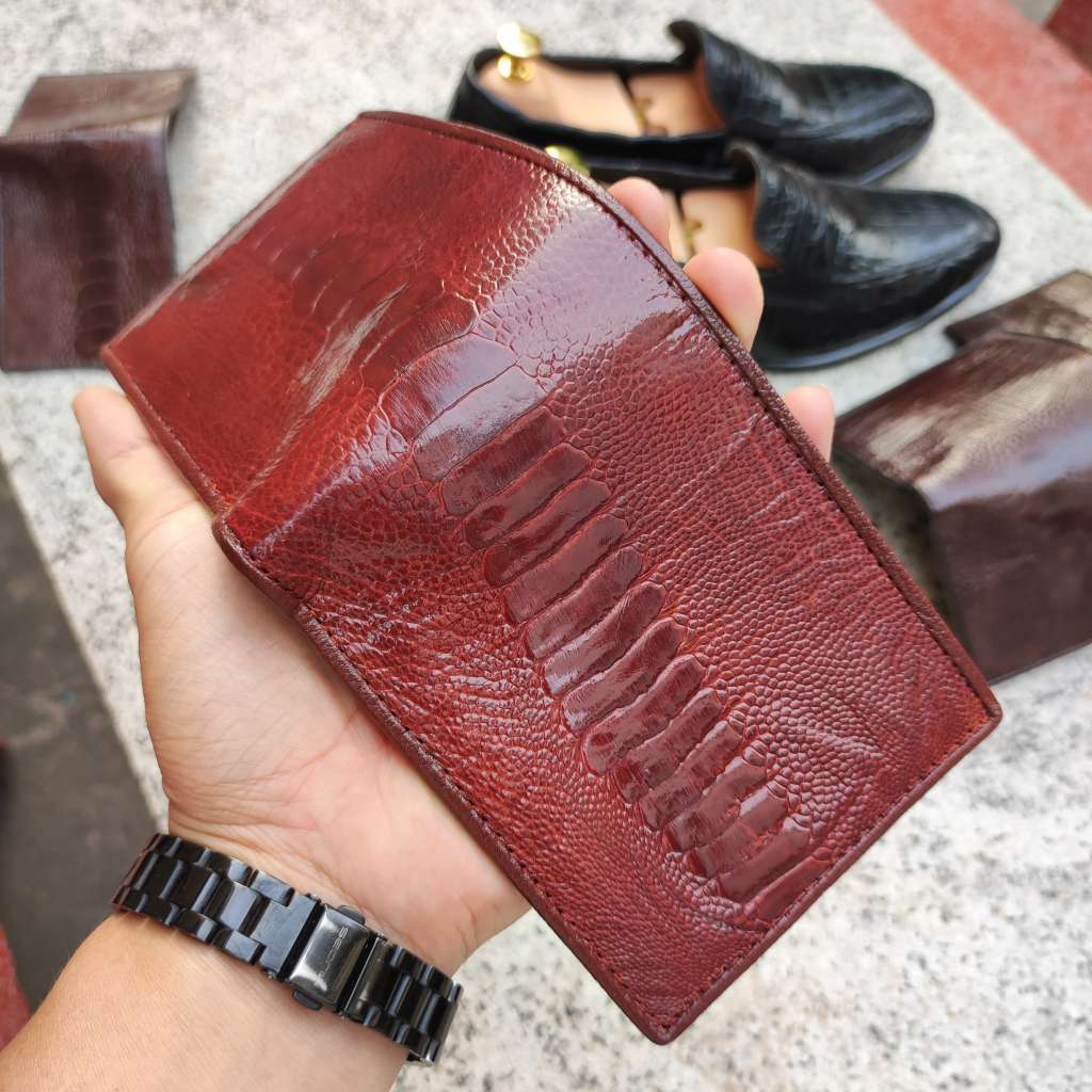 Ví da đà điểu nâu đỏ Sang chảnh. 2 mặt da đà điểu!