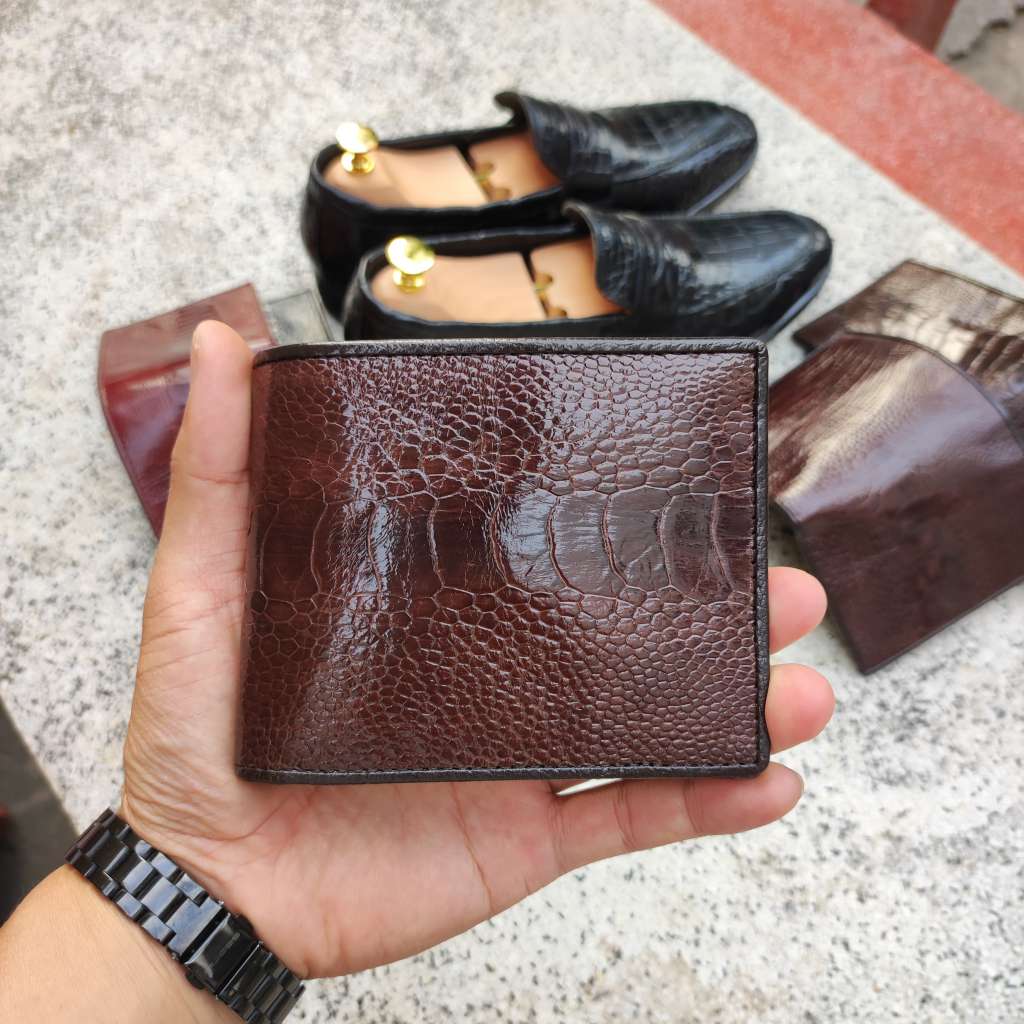 Bộ sản phẩm bao gồm: Ví đà điểu cao cấp + Hộp sang trọng + Thẻ bảo hành bởi Ovenis