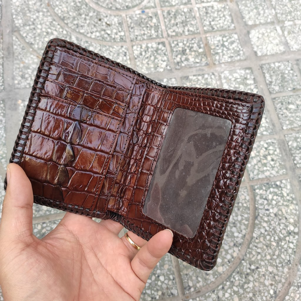 - Mã ví VS2V1N bạn đang xem được làm từ gù xuống lưng của cá sấu lớn, những cái gù tròn nổi ở mặt trước và những hàng gai lưng chạy song song ở mặt sau của ví đều đã hình thành xương của cá sấu. Nên nếu dùng ngón tay ấn vào gù và gai lưng sẽ thấy rất cứng vì đó là xương cá. Còn nếu là hàng da bò dập vân cá sấu/giả da cá sấu thì những cái gù và hàng gai lưng được khuôn tạo hình dập lên từ da bò (bản chất vẫn là da không phải là xương) nên sẽ mềm, ấn vào có độ nún chứ không chắc chắn.